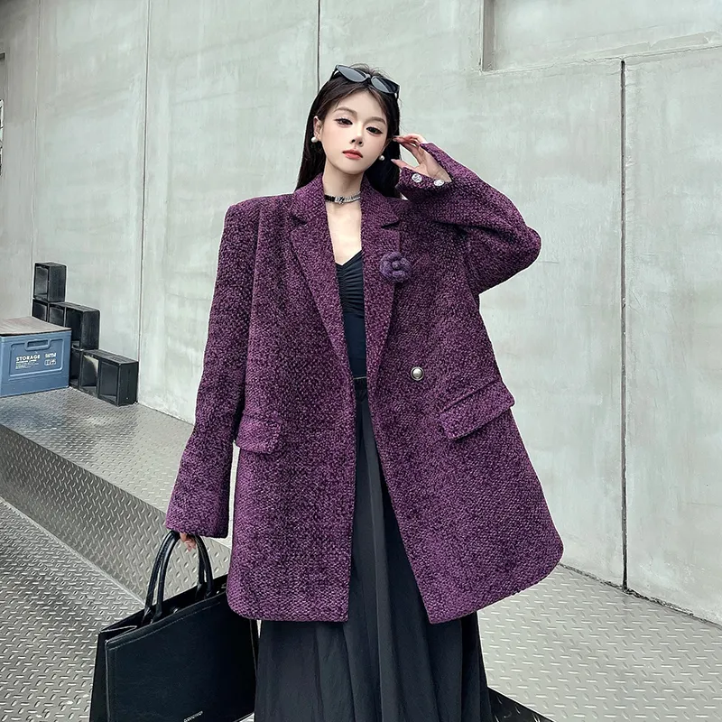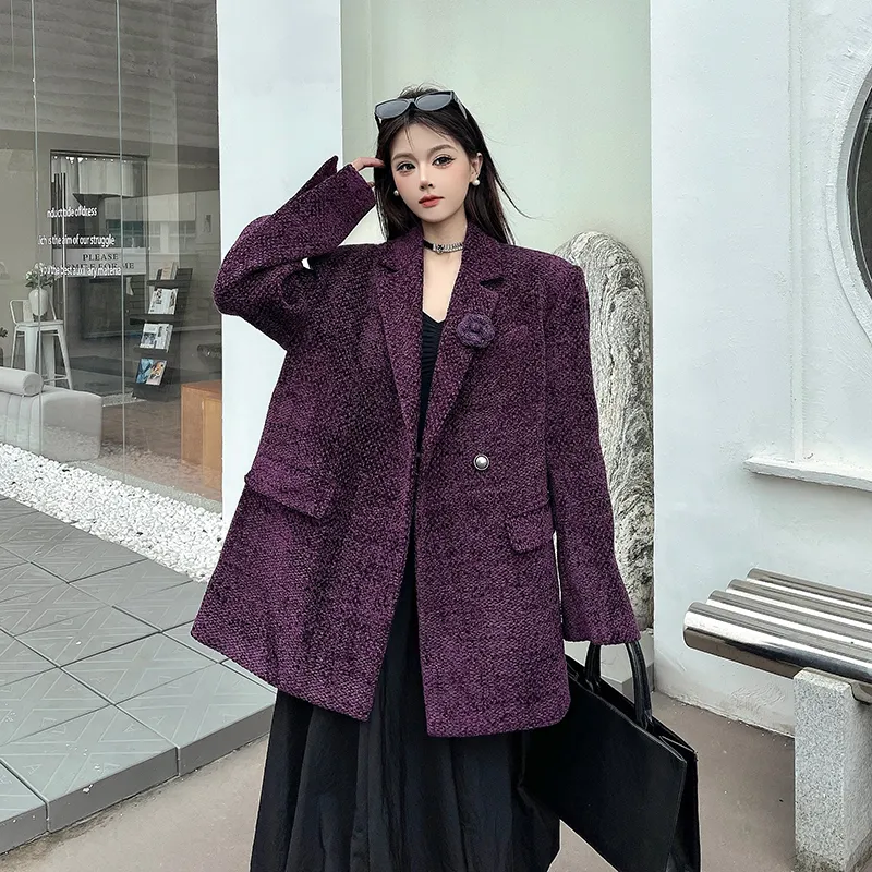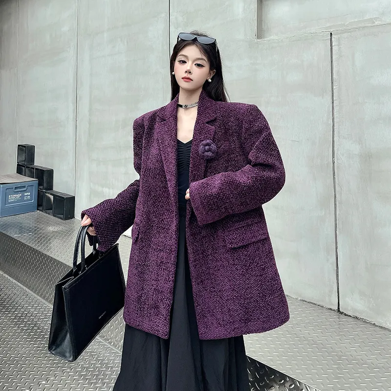 ZEKIKO STUDIO Фиолетовый Утепленный Пальто с Подкладкой для Женщин