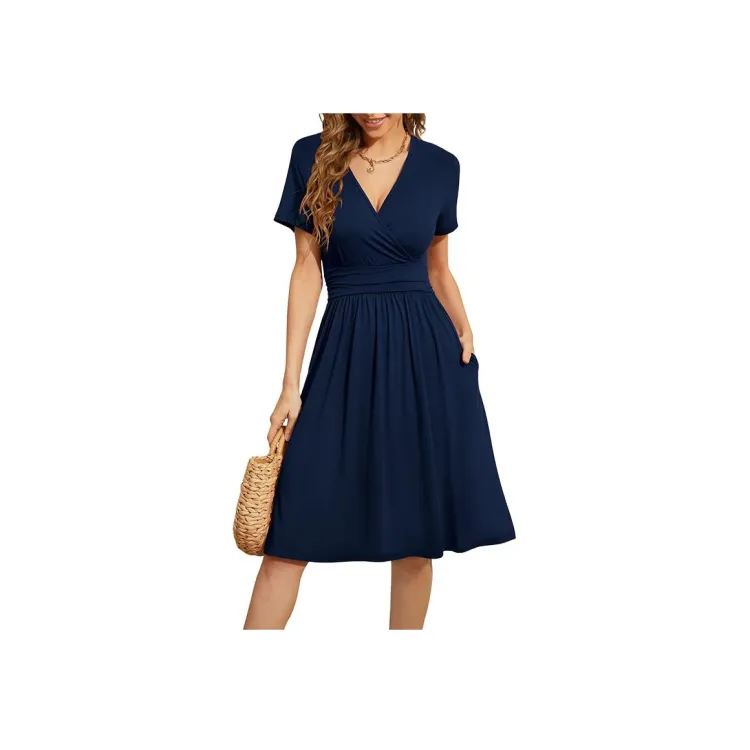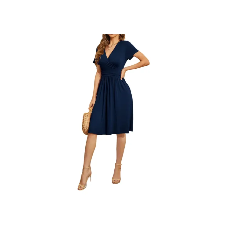 ZEKIKO STUDIO Темно-синий женский короткий с рукавами платья