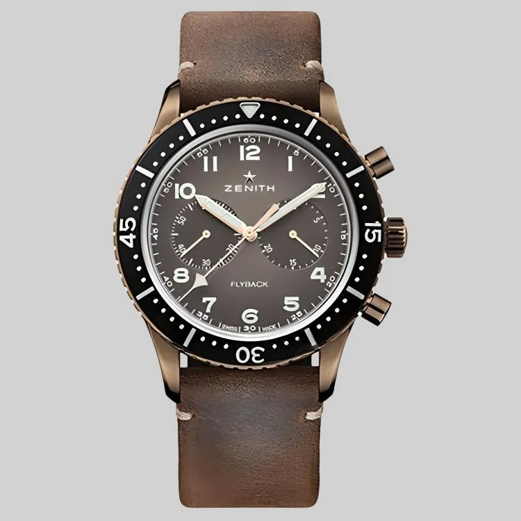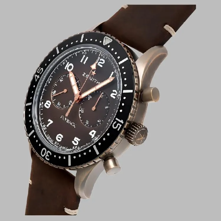 ZENITH PILOT Collection Автоматический Механический Механизм Мужские Часы Часы Зеленый Циферблат Бронза Корпус Часов