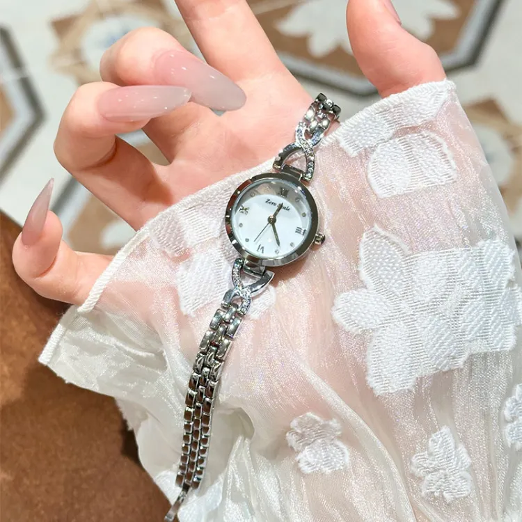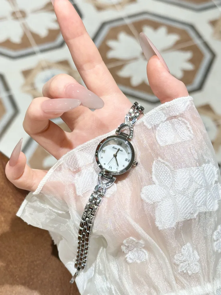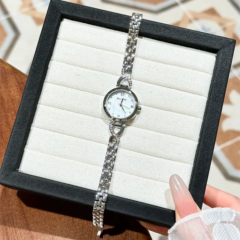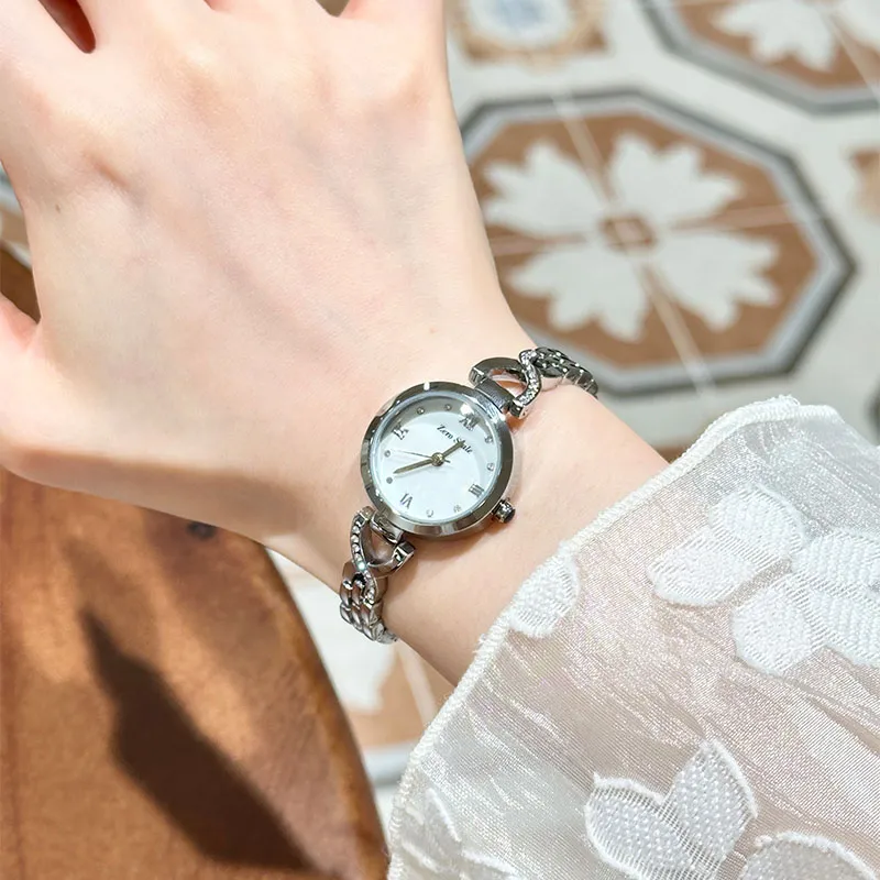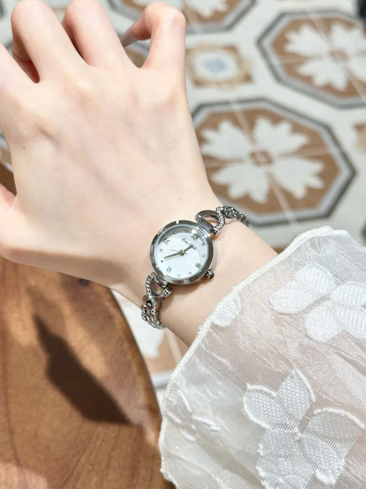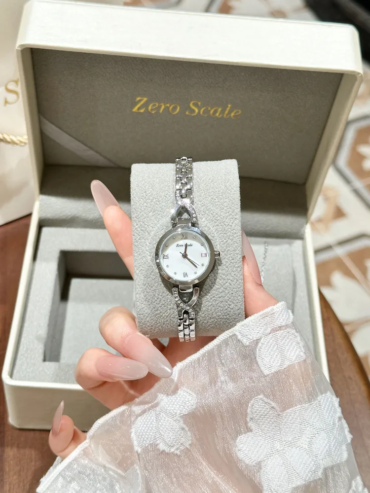 Zero Scale Small Waist Series Кварцевый механизм Металлический ремешок Часы для женщин Жемчужная раковина Циферблат часов
