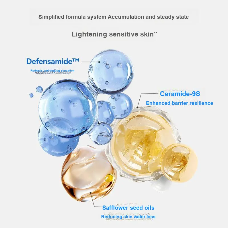 Растение стеролы, Вода, 1, 3-Пропиленгликоль, Глицерин, Каприлик/Каприновый триглицерид, Мускатный орех Цетил/Пальмоял/Олейл стеарат/Арахамид MEA, Цетиловый спирт, Стеариевая кислота, Сорбитан стеарат, Красные цветы (CARTHAMUS TINCTORIUS) Семена Масло, Глицерин стеарат, Полидиметилсилоксан, 1, 2-Гексиленгликоль, Токоферол ацетат, Синьцзянский алкоголь, Бисаболол, Желтая резинка, Аргинин, Карбомер, Соль гиалуроната
