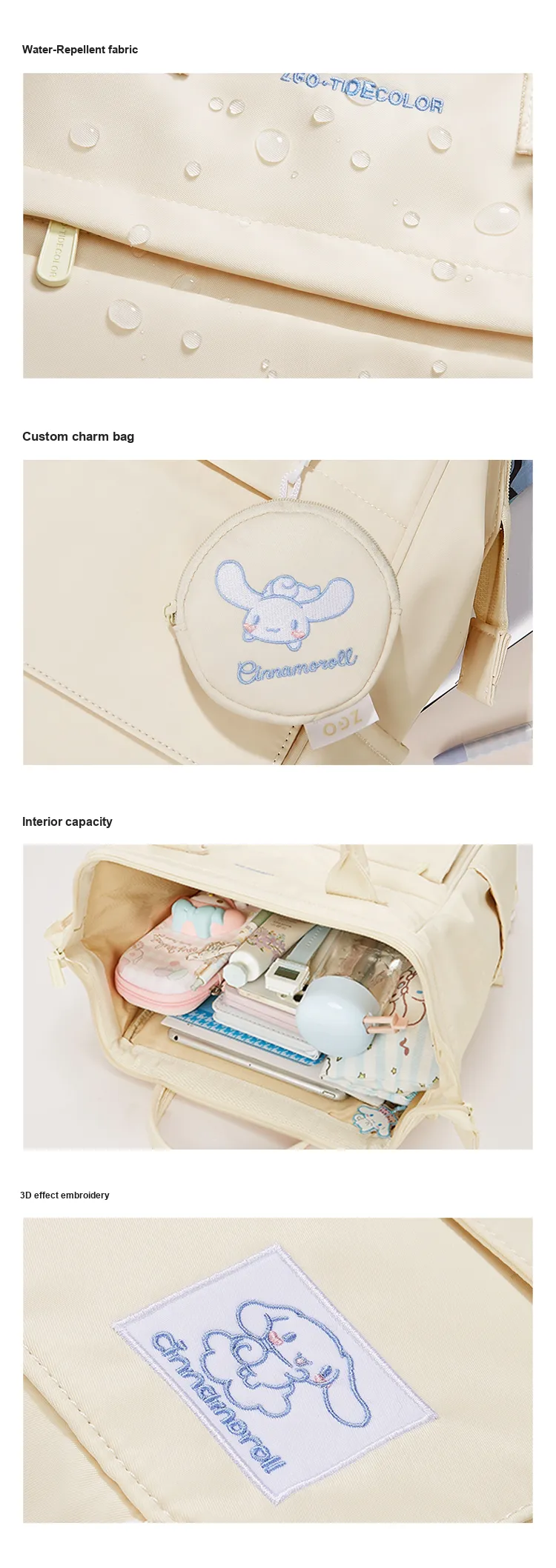 Zgo Sanrio Рюкзак Полиэстер Студенческий Рюкзак для Старших Школьников Большая Емкость Маленький Унисекс Экрю