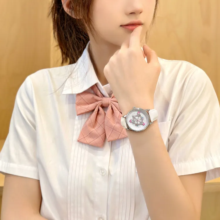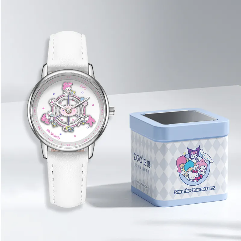 Zgo Sanrio Co Branded Кварцевый механизм Искусственная кожа Ремешок Часы Женские Белый циферблат
