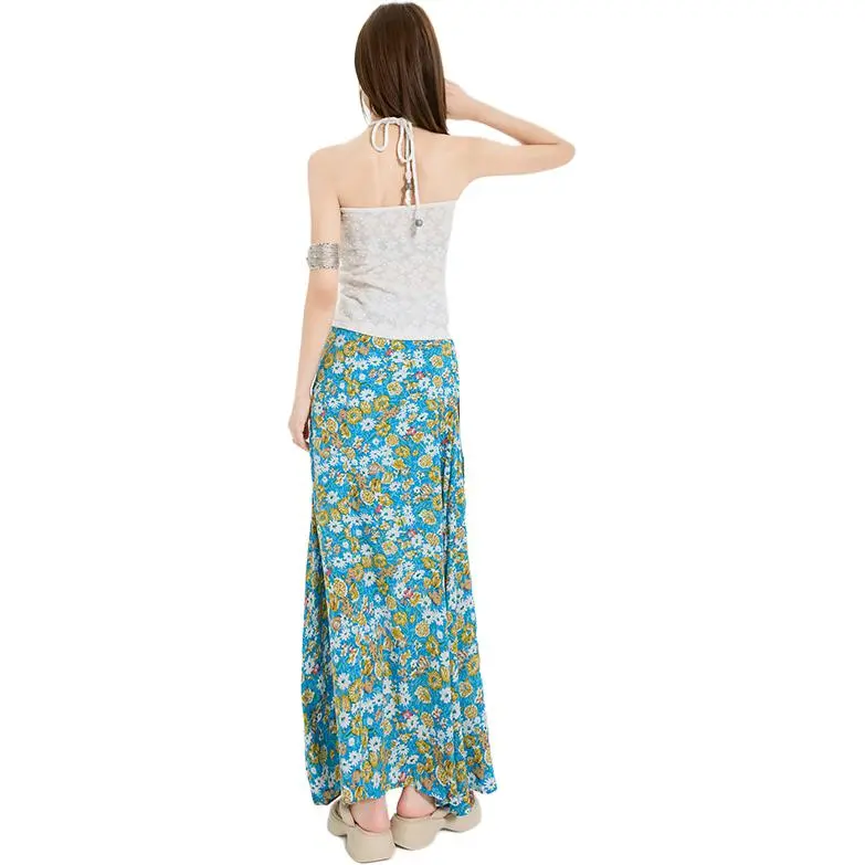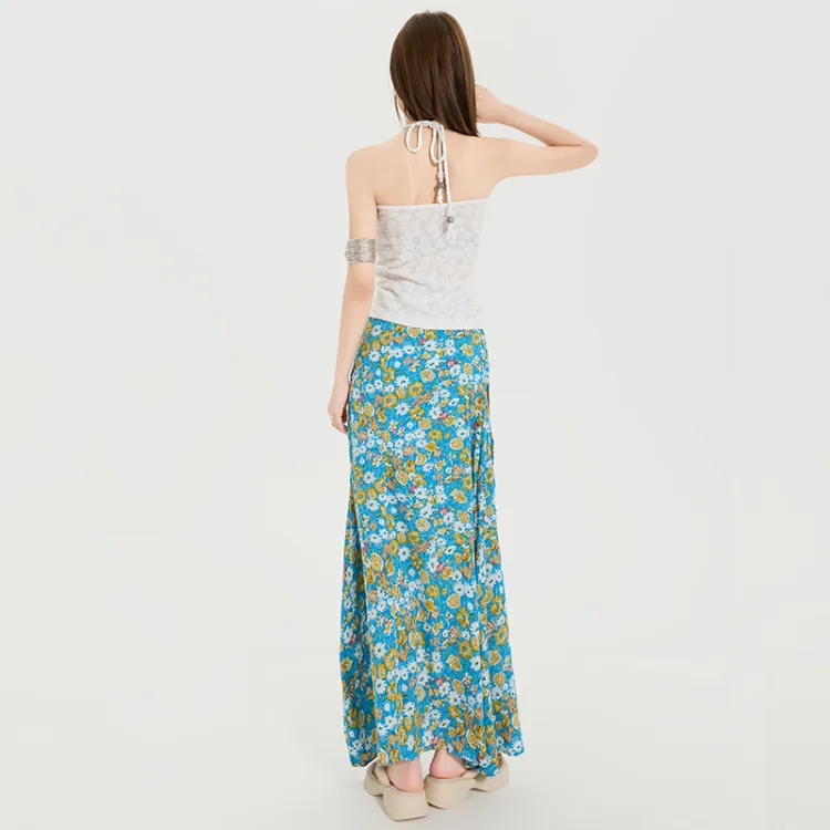 Белый топ без бретелей с цветочным принтом и юбка