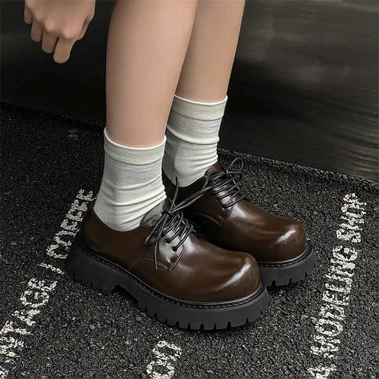 ZHENRAN Chunky Derby Обувь Повседневная Кожаная Обувь Унисекс