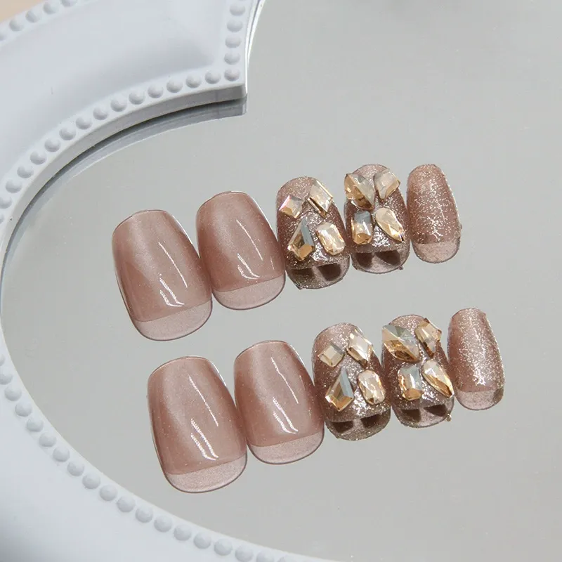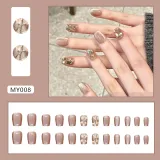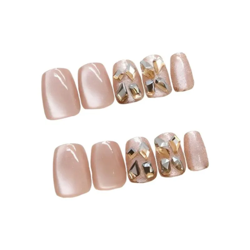 ZHENYUE MY008 Сверкающая галактика Клей On Фальшивые ногти Укороченный Короткий ЛАДДЕР Розовый Телесный