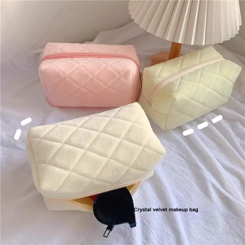Тип:Кристальная Вельветовая Косметичка-Ромб Белая-1 Размер
