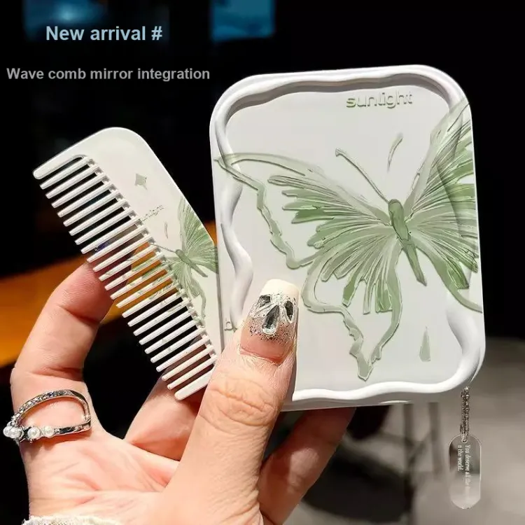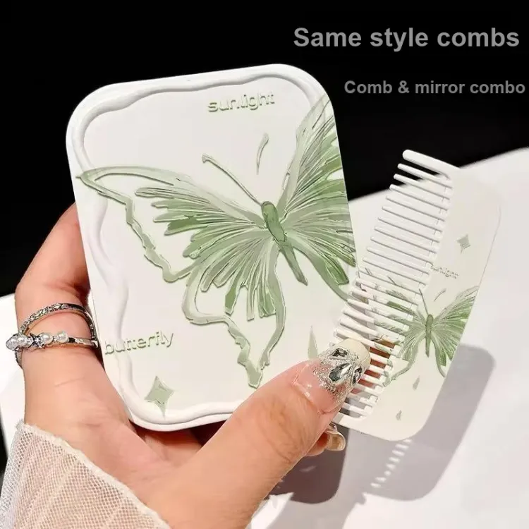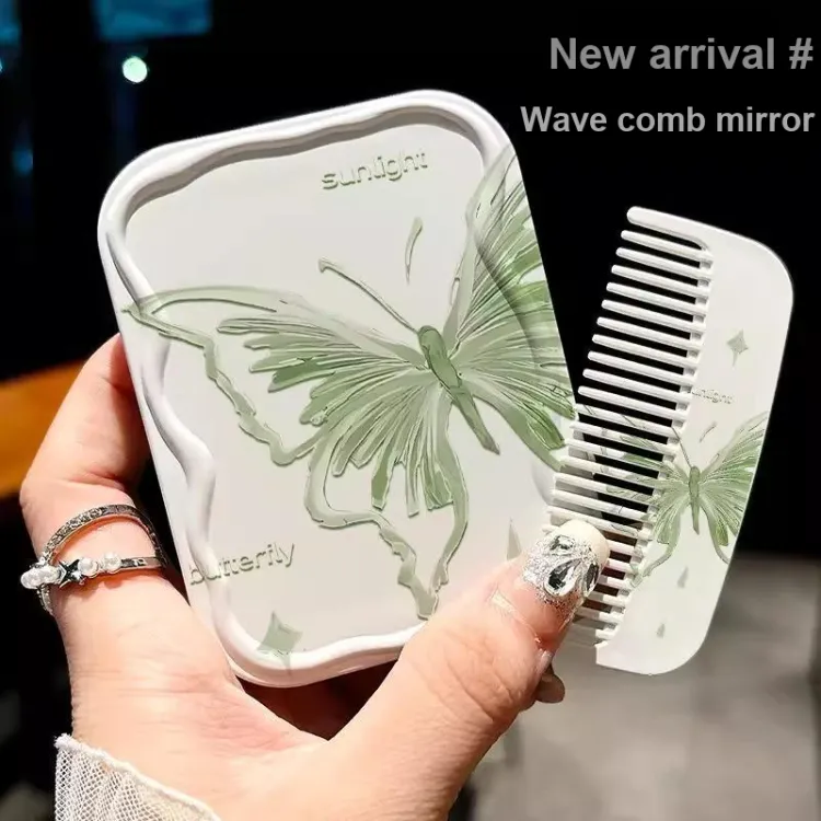 Портативное карманное зеркало - Зеркальце + Гребень + Украшение - 1 комплект