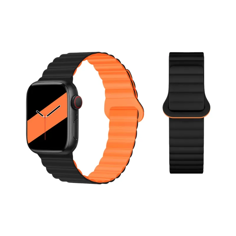 Яблоко Силиконовый ремешок - Полночный черный * Черный и оранжевый