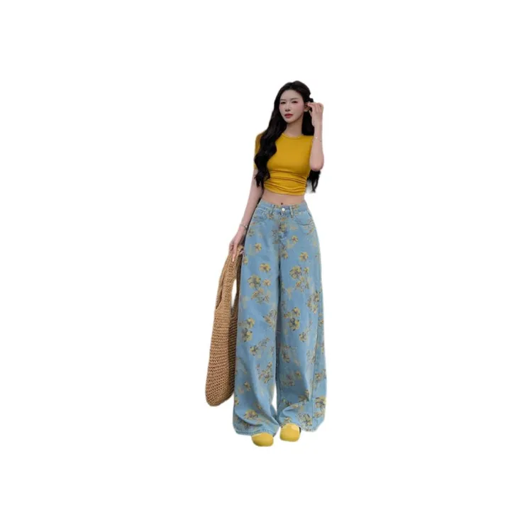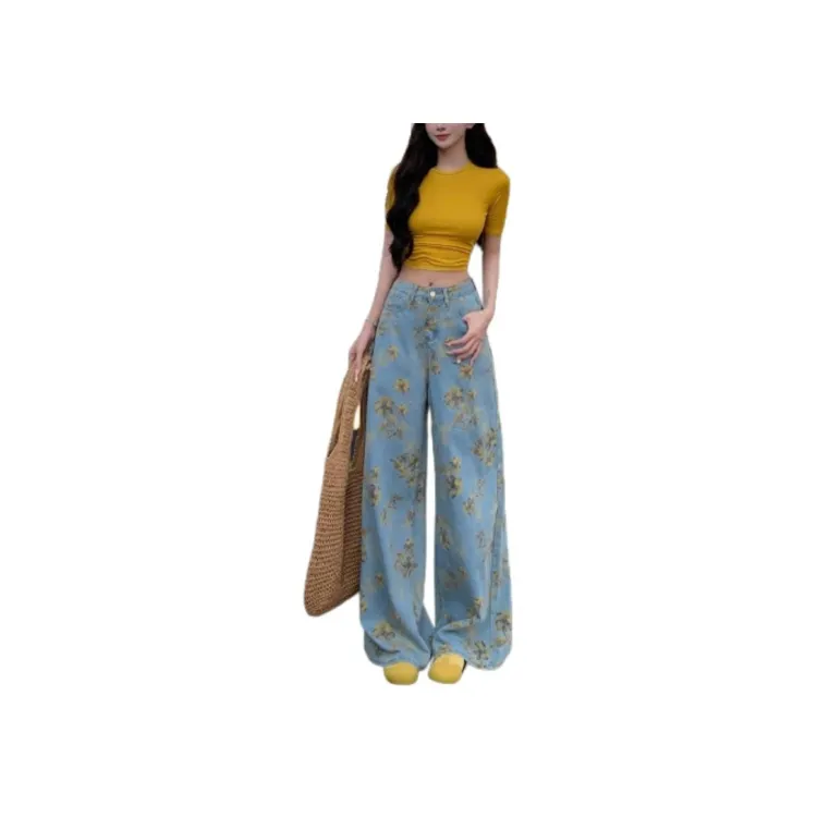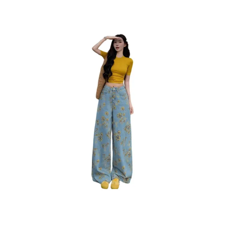 ZHUFEI Женские джинсы с синим цветком