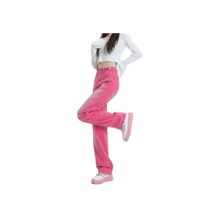 ZHUFEI Pink Red Women's Jeans ZHUFEI Розовые Красные Женские Джинсы
