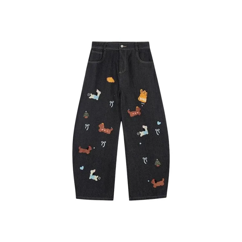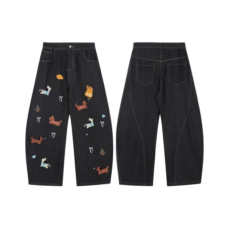 ZHYJ Джинсы Унисекс Весна Осень Свободный крой Модный бренд Широкие брюки