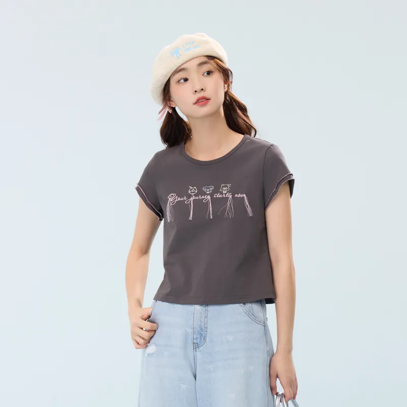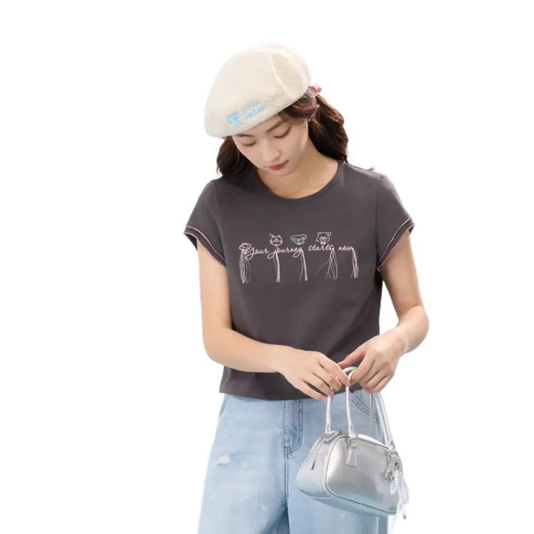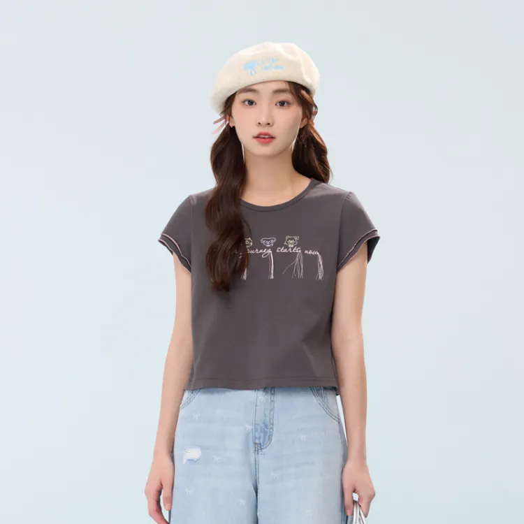 ZIHAN Flutter Sleeve T-Shirt Женская Серый