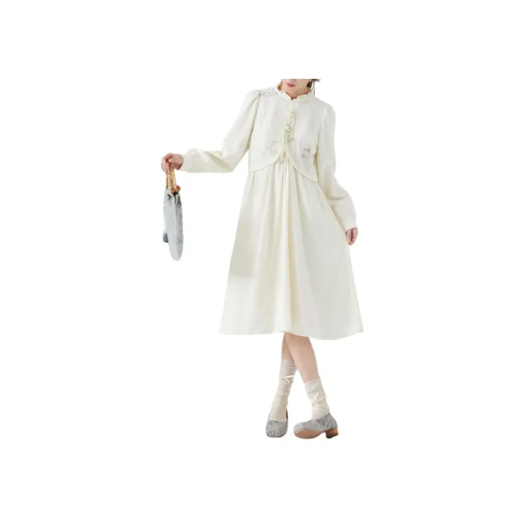 ZIHAN Длинное платье с длинными рукавами женское бежевый