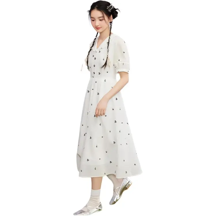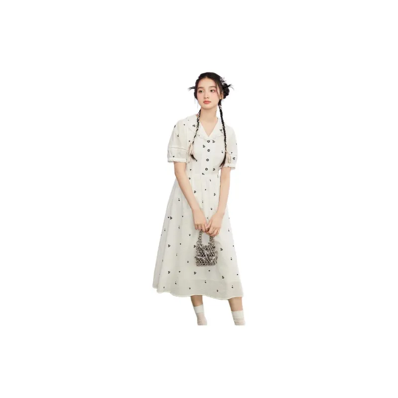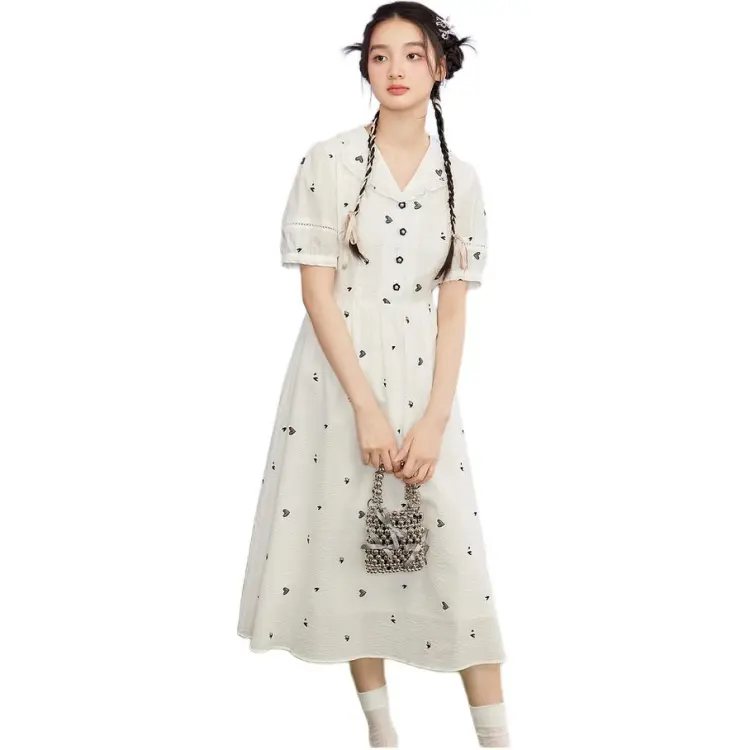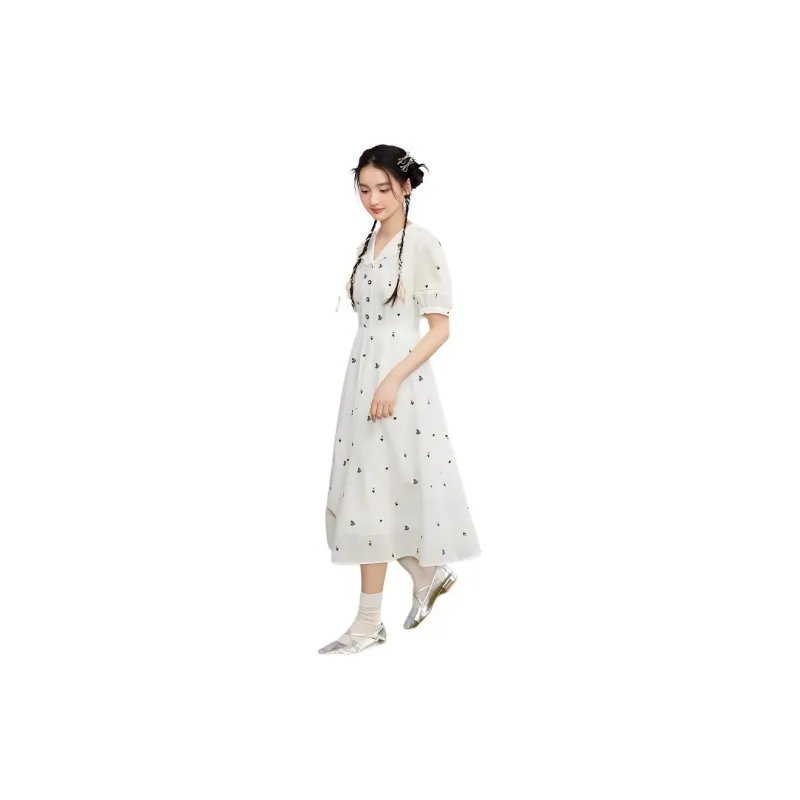 ZIHAN Короткий рукав Платье Женское Белое