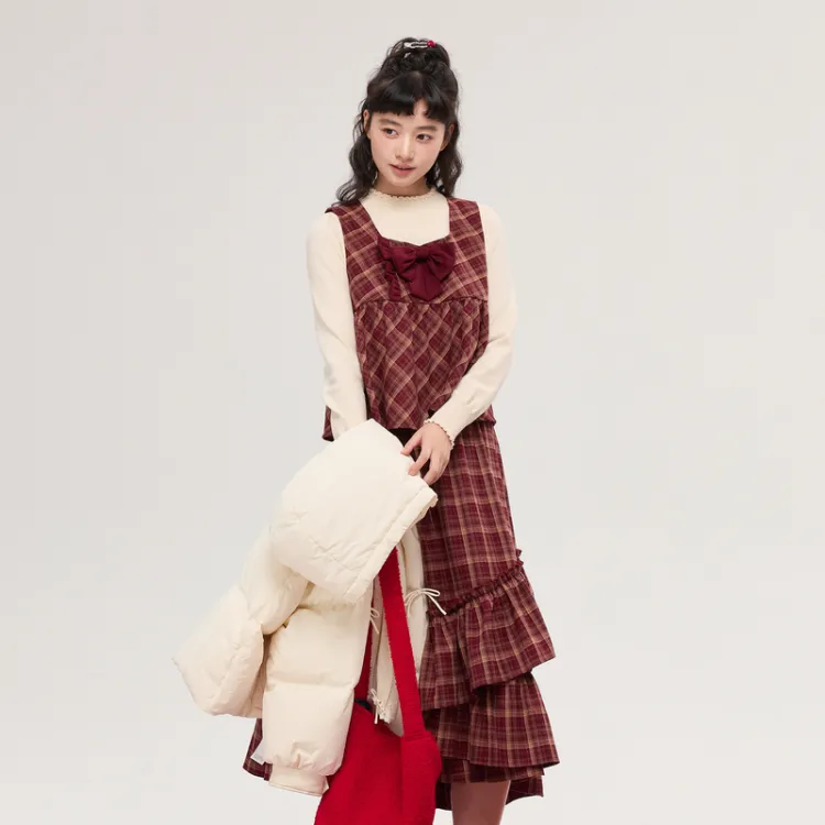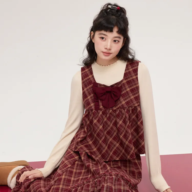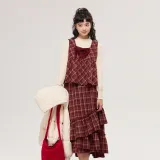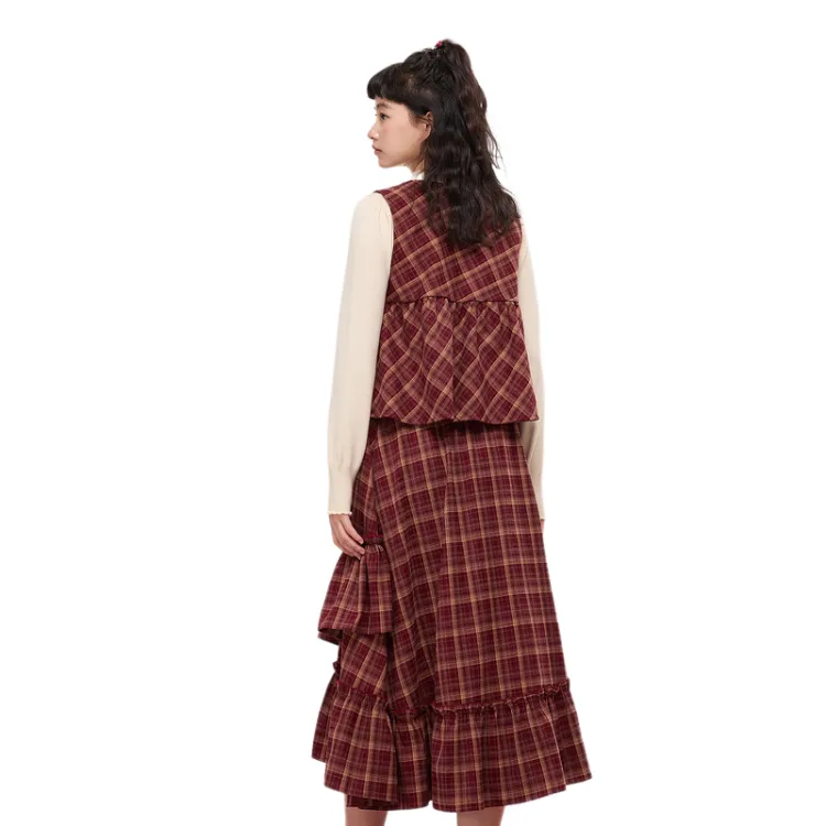 ZIHAN Красный Клетка Женский Комплект Юбка