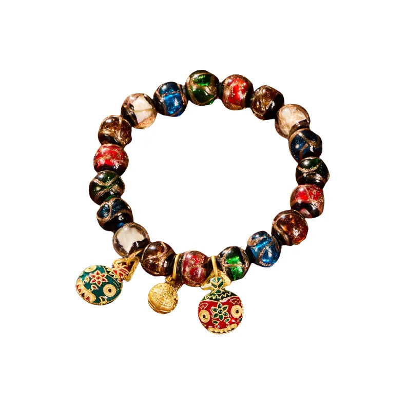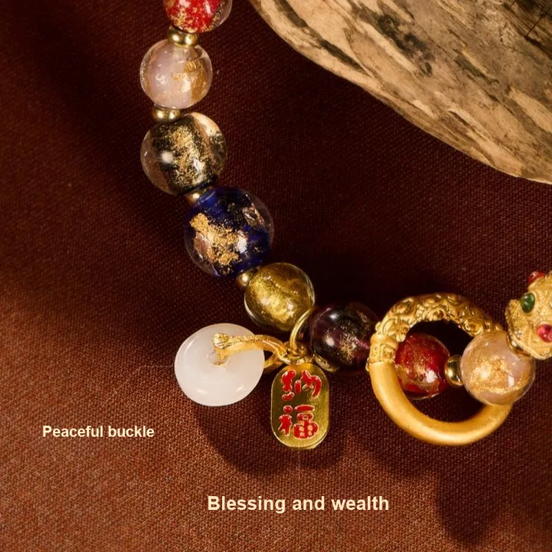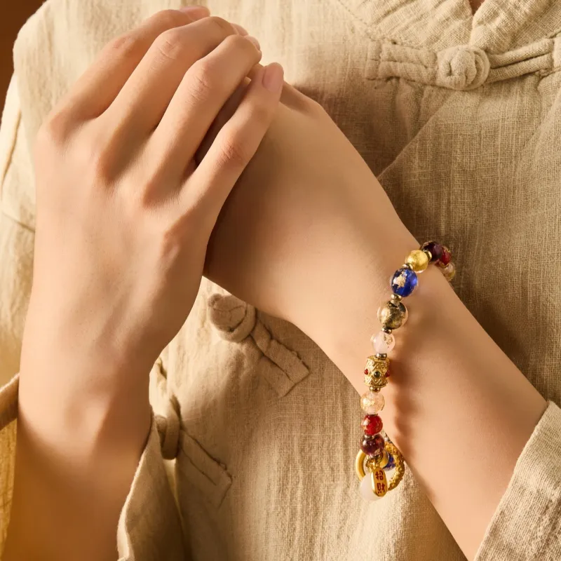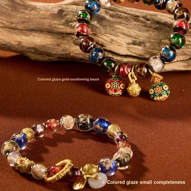 Стиль:Браслет с бусинами "Поглощающий зверь" с цветной глазурью и золотом