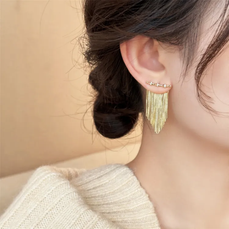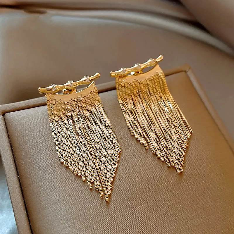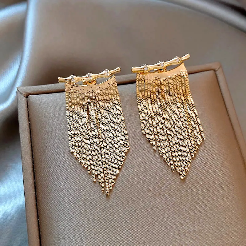 Стиль:Золото Бамбук 925 стерлинговое серебро, серьги-кольца с кисточкой