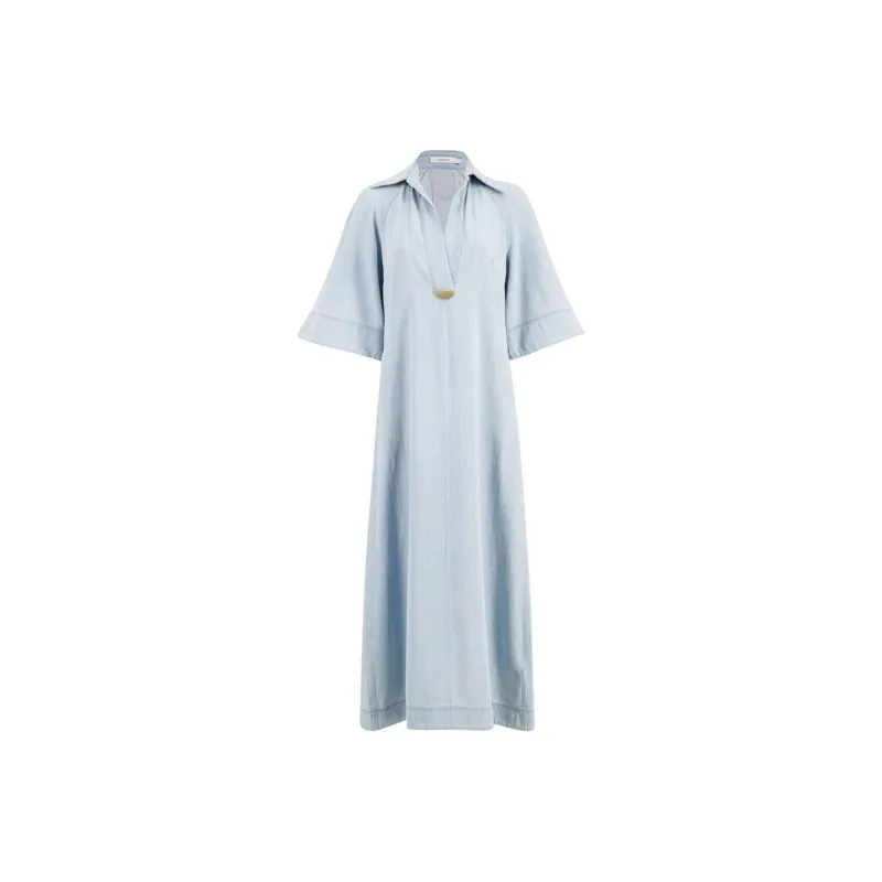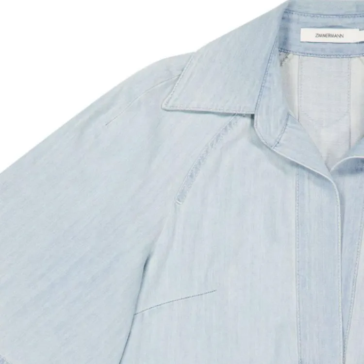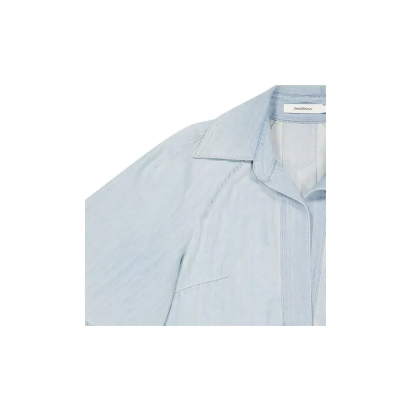 Zimmermann FW24 Короткое платье с короткими рукавами женское ледяной синий