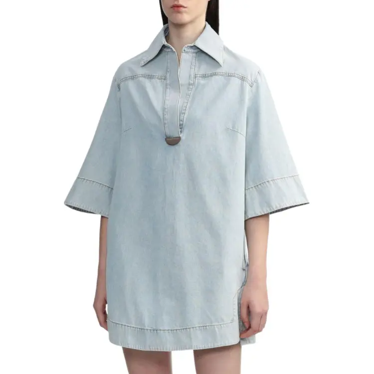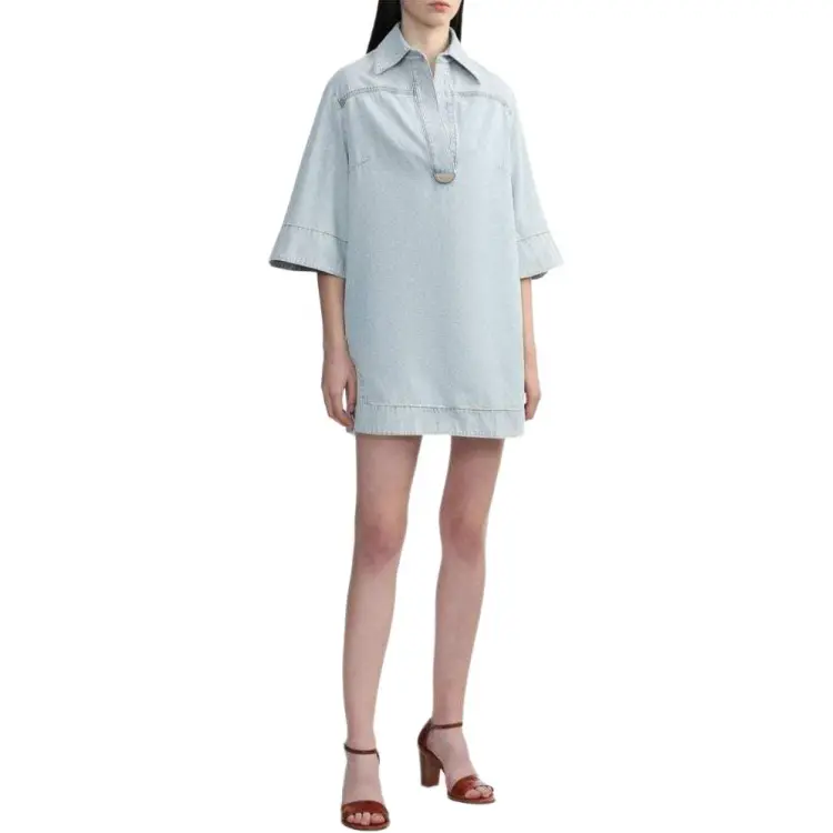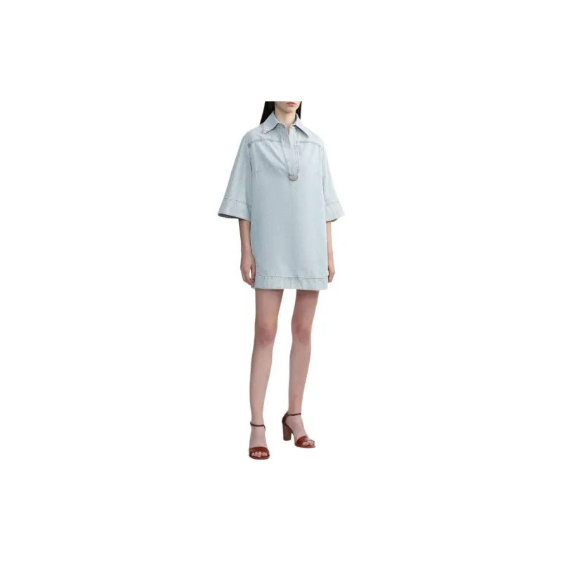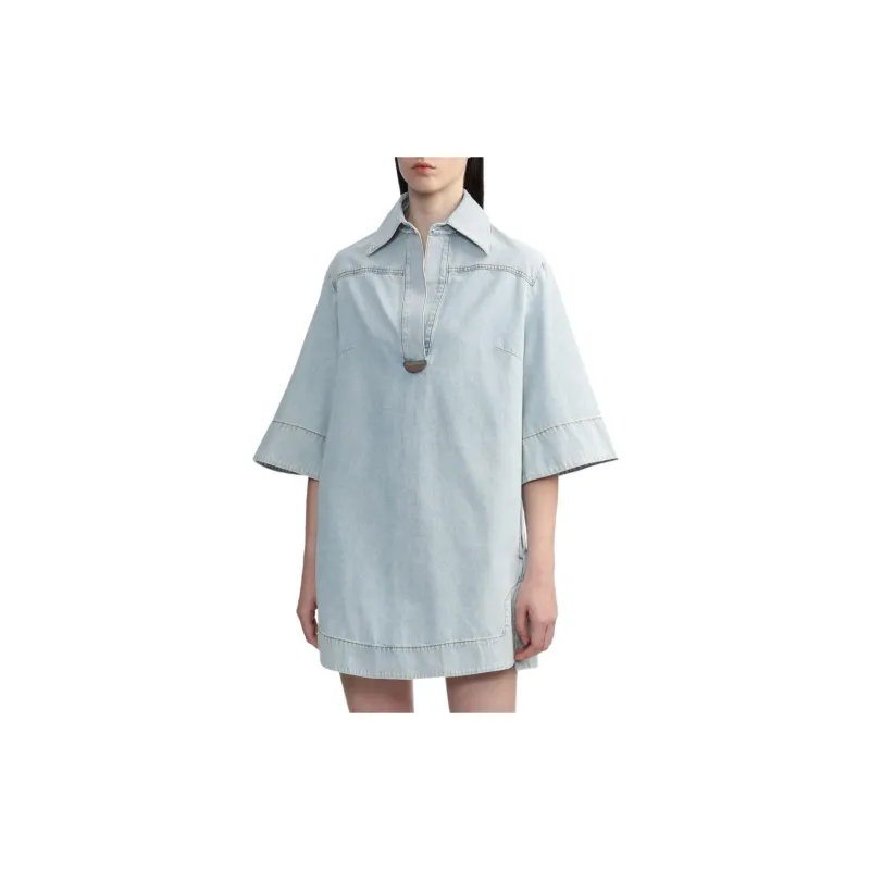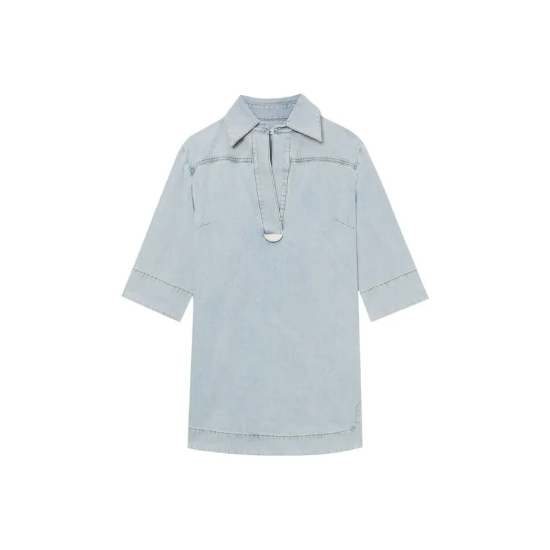 Zimmermann SS24 Короткое платье с короткими рукавами женское светло-синее