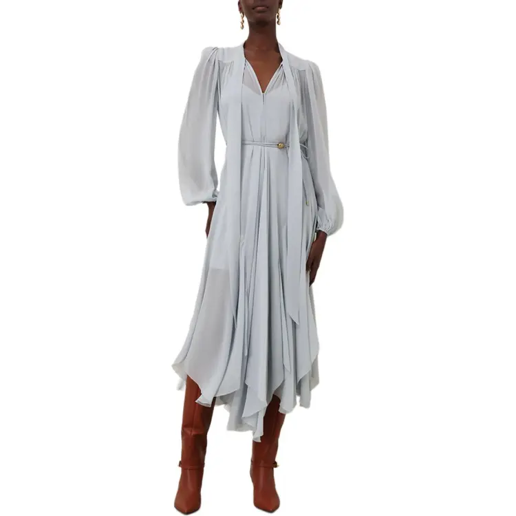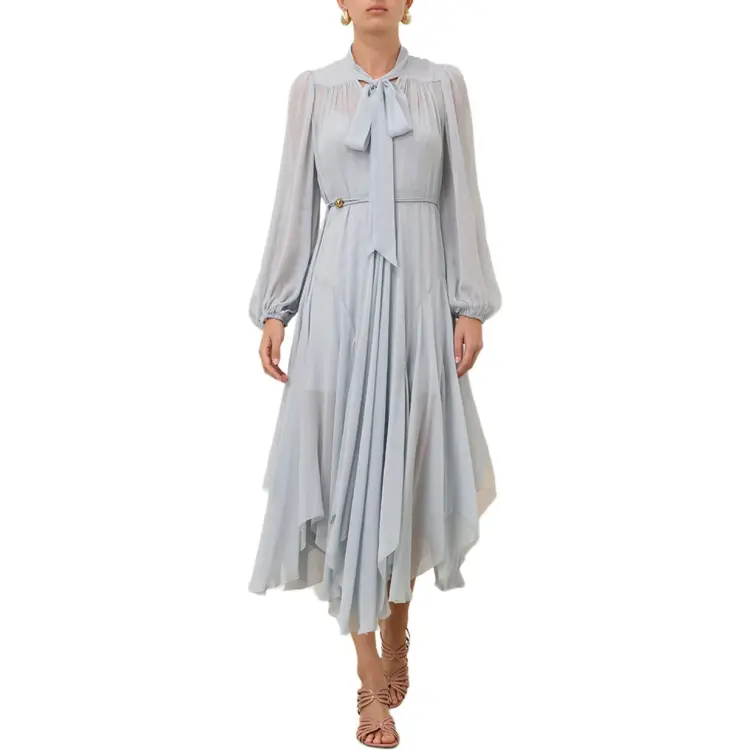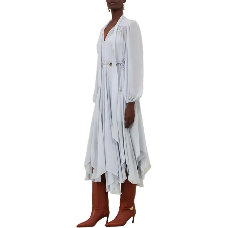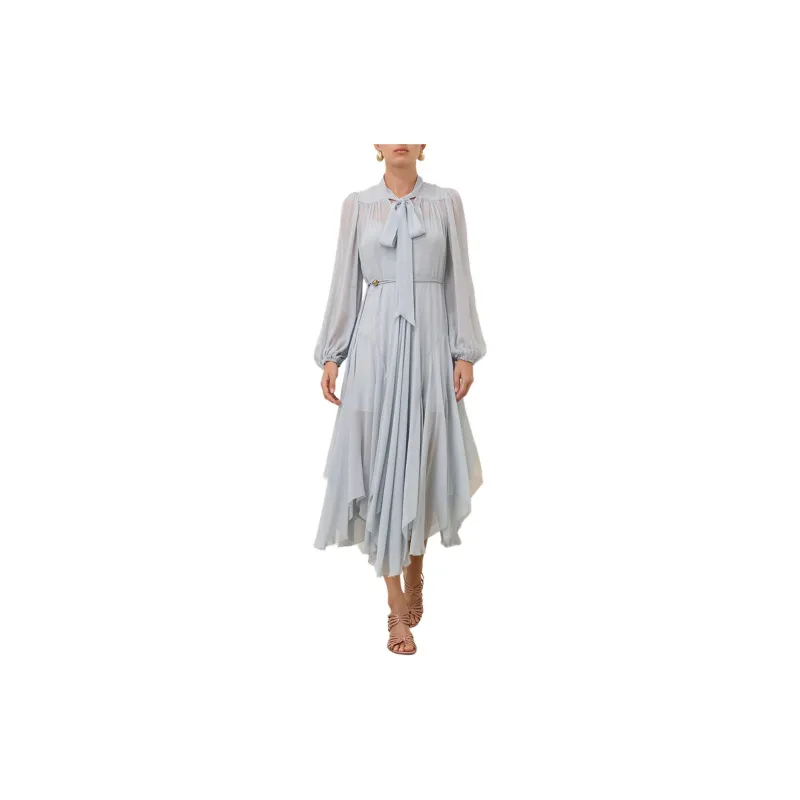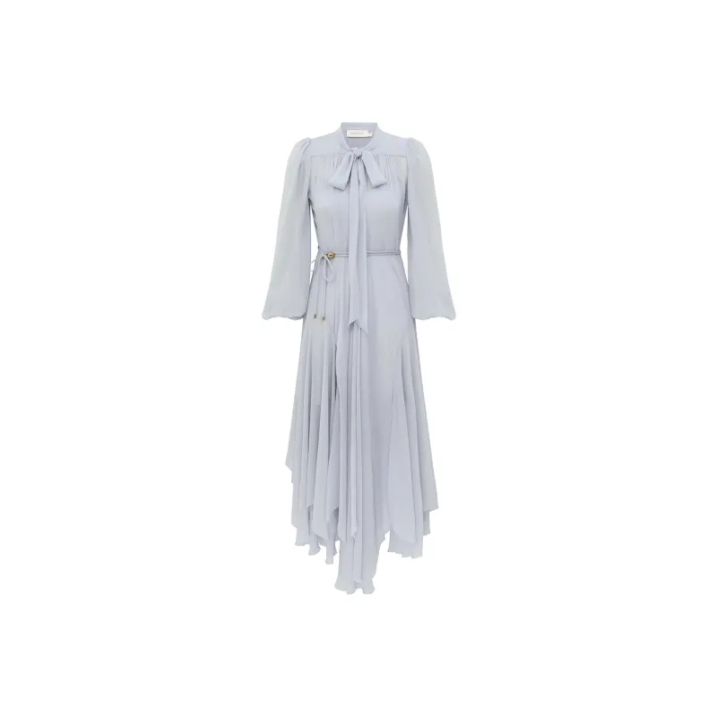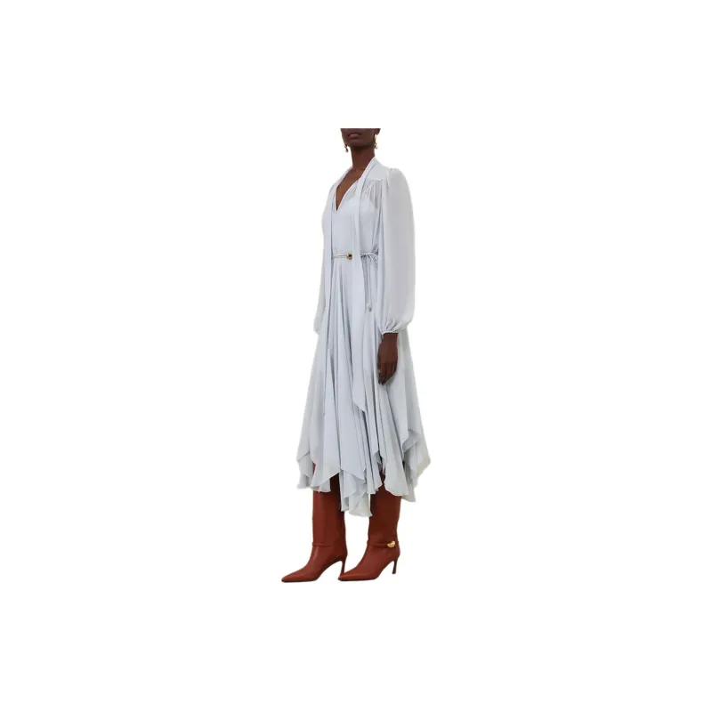 Zimmermann Длинное платье с длинными рукавами женское синее