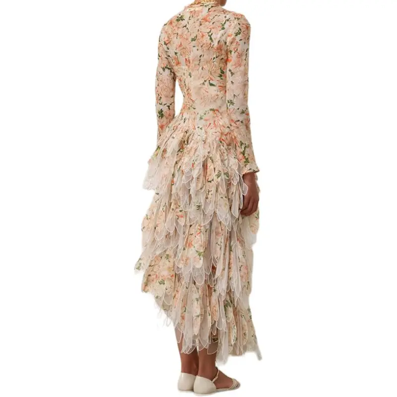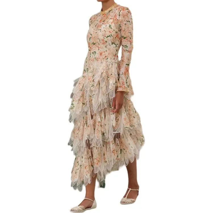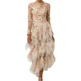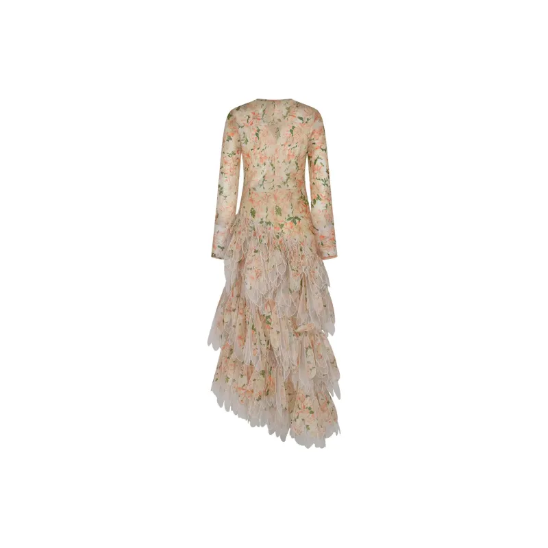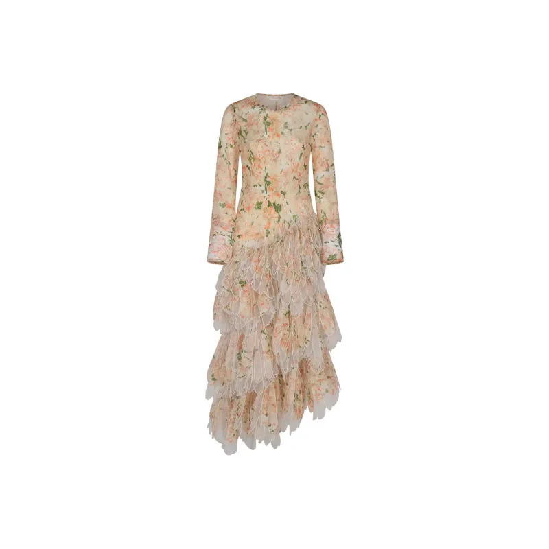 Zimmermann Длинное платье с длинными рукавами женское абрикосового цвета