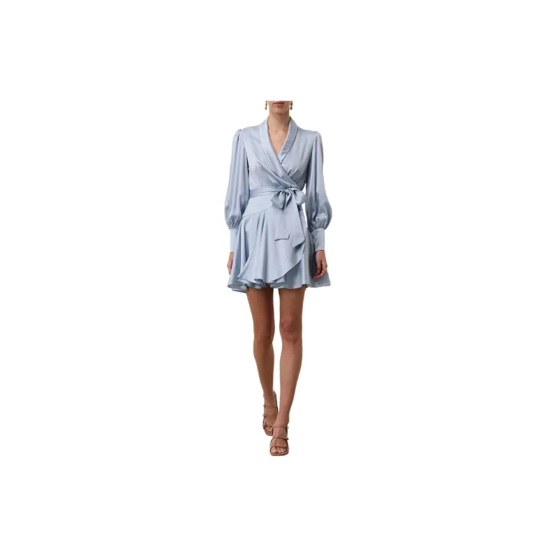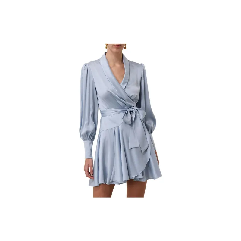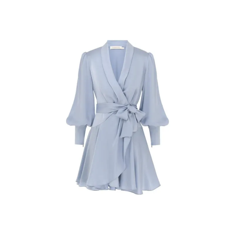 Zimmermann FW24 Длинное платье с длинными рукавами женское светло-синее