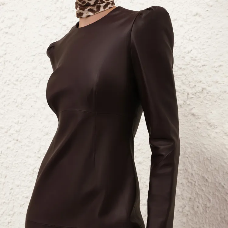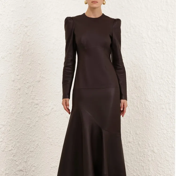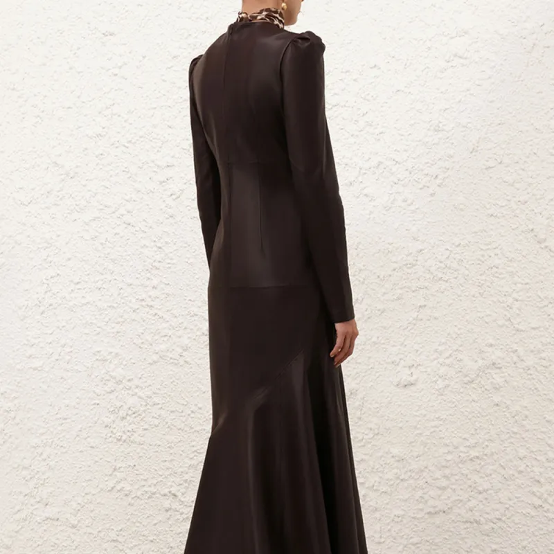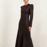 Zimmermann FW24 Длинное платье с длинными рукавами женское темно-коричневое