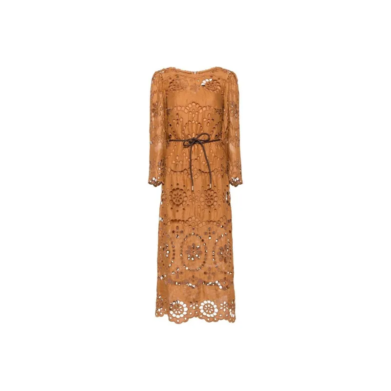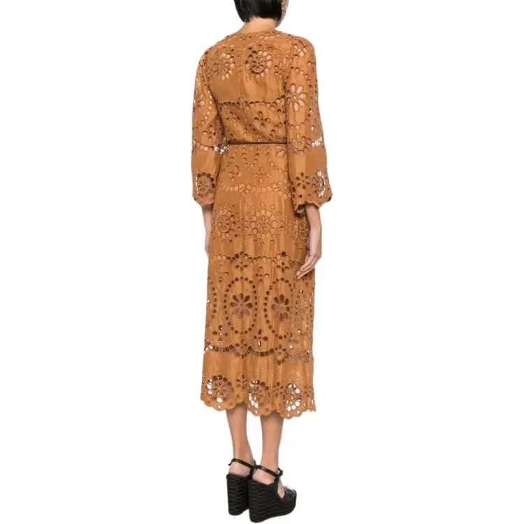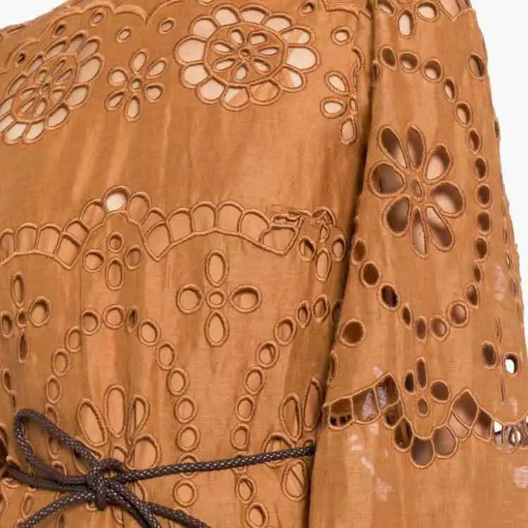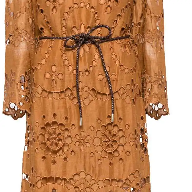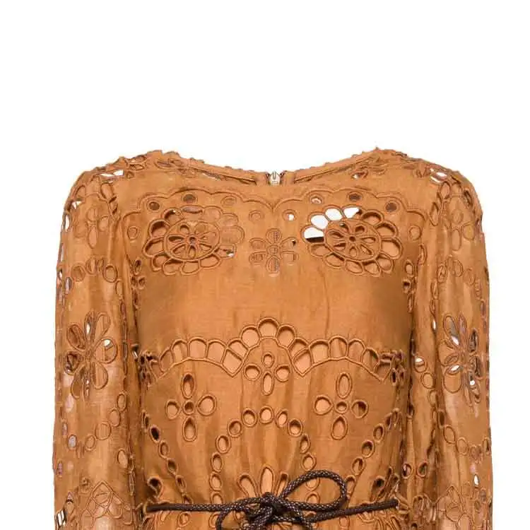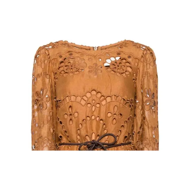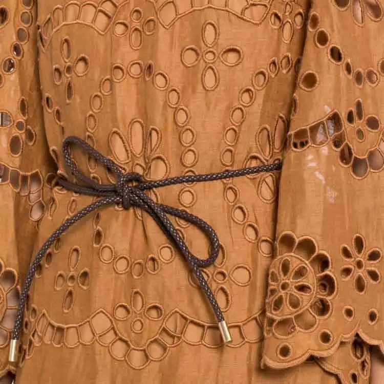 Zimmermann SS24 Длинное платье с длинными рукавами женское кремовое коричневое