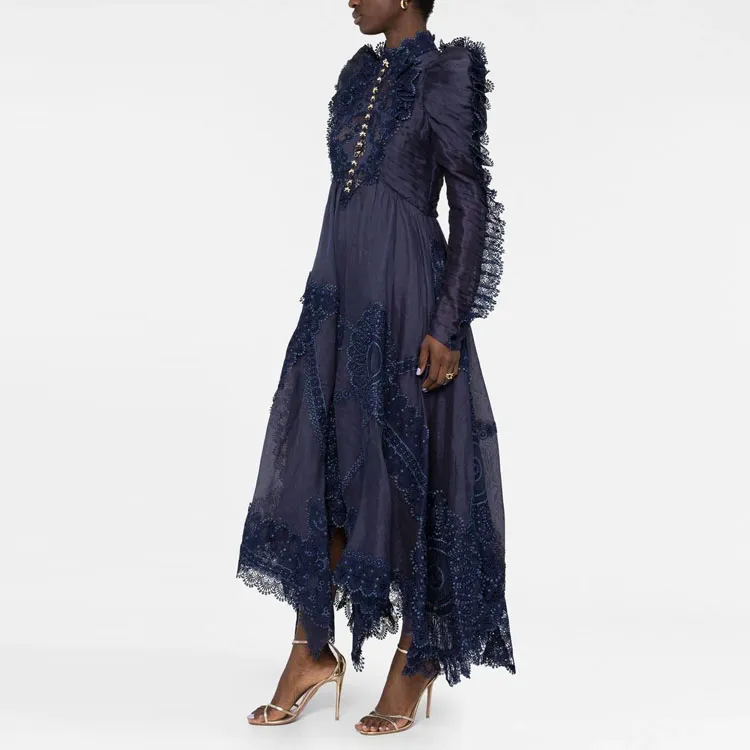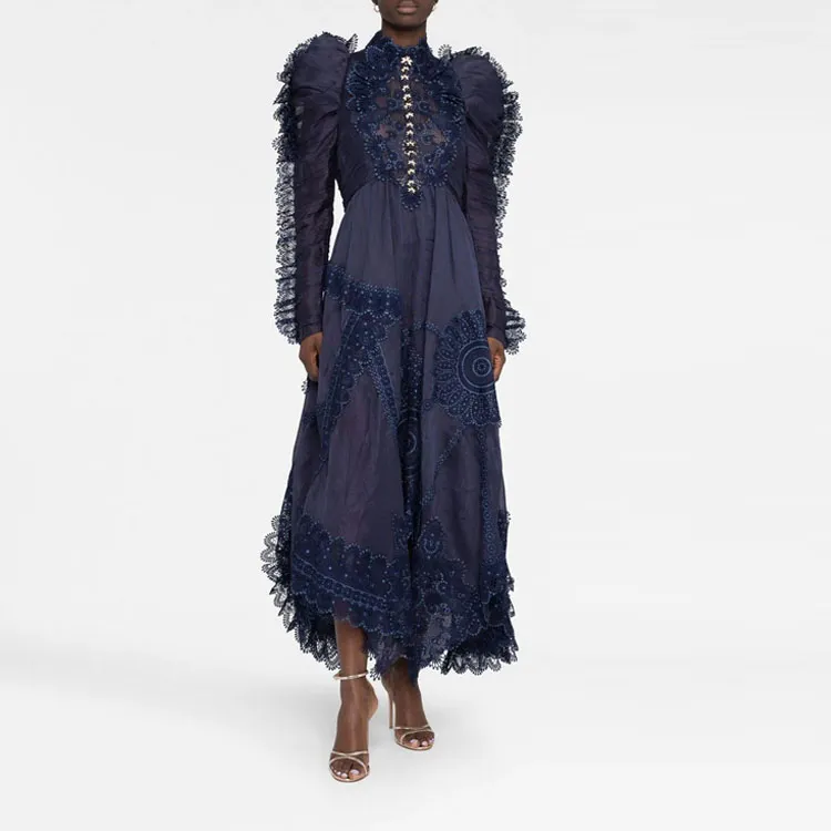 Zimmermann SS23 Длинное Платье с Длинными Рукавами Женское Фиолетовое
