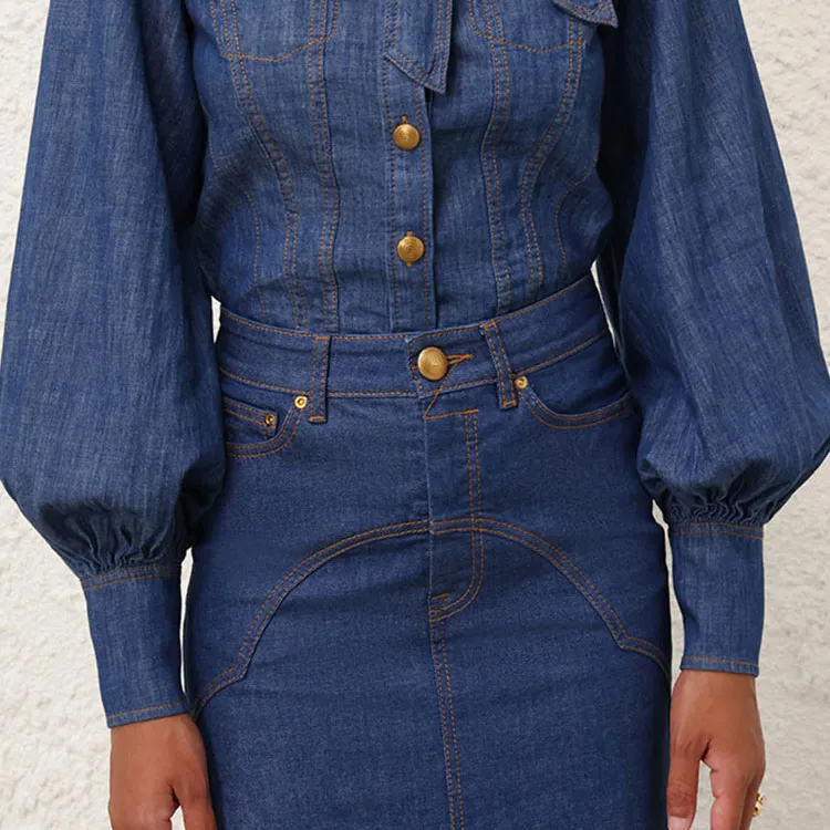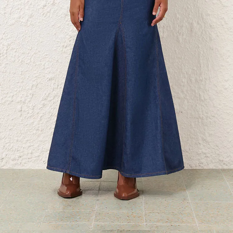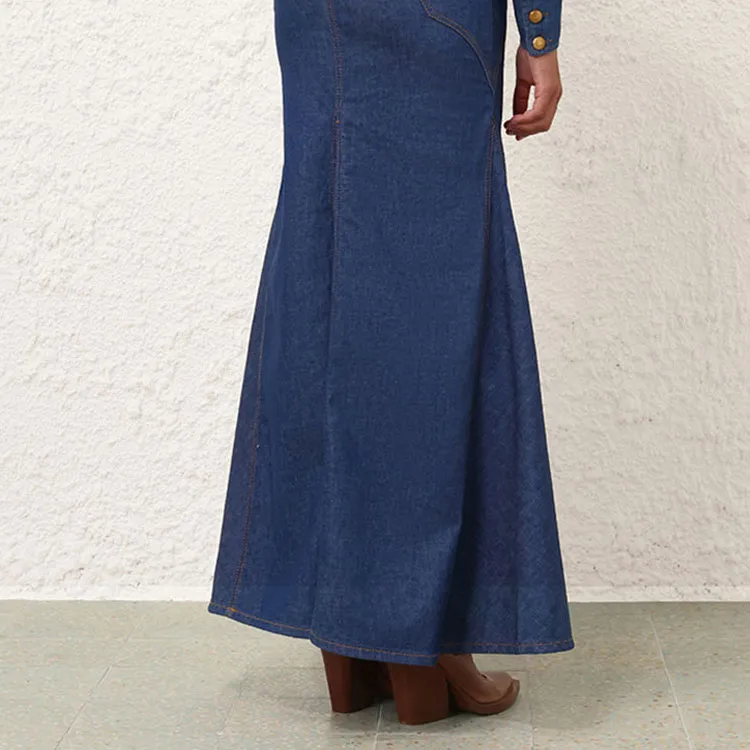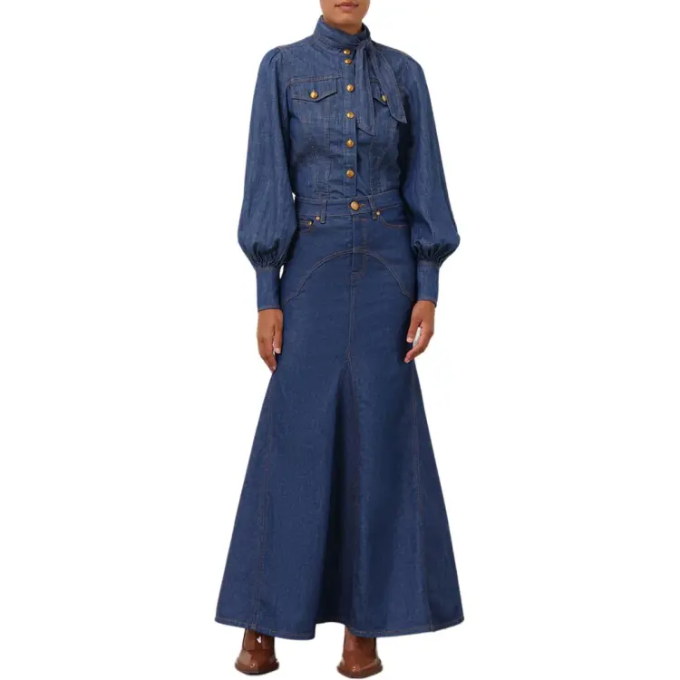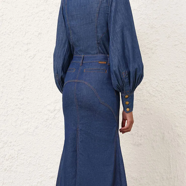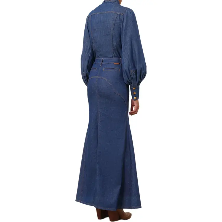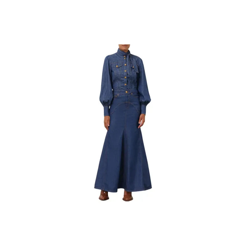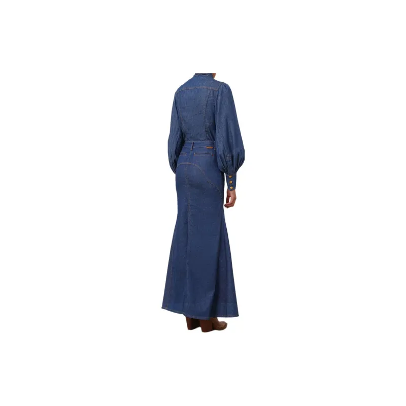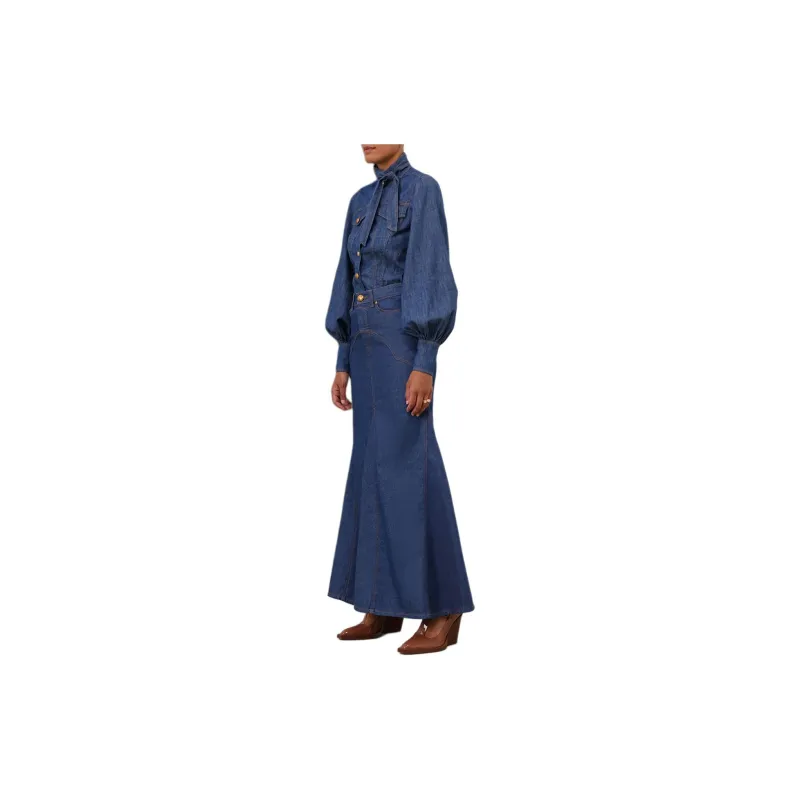 Zimmermann SS24 Denim Длинная Юбка Женская Railway Синий