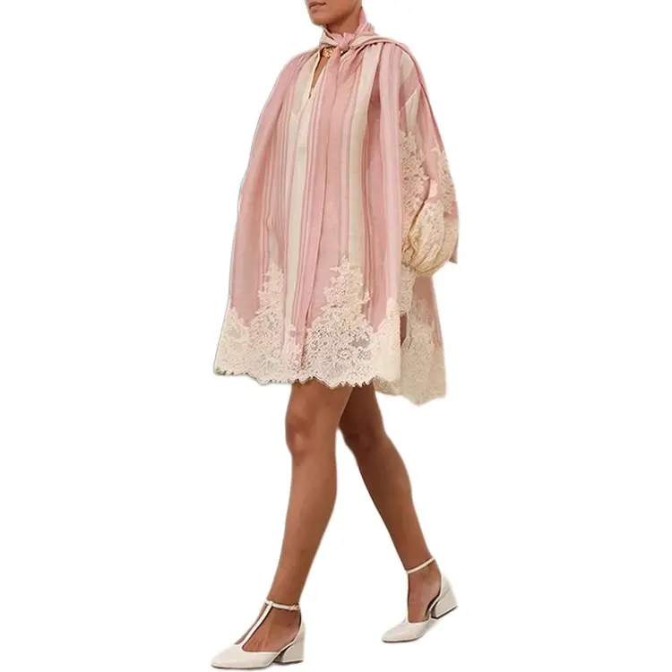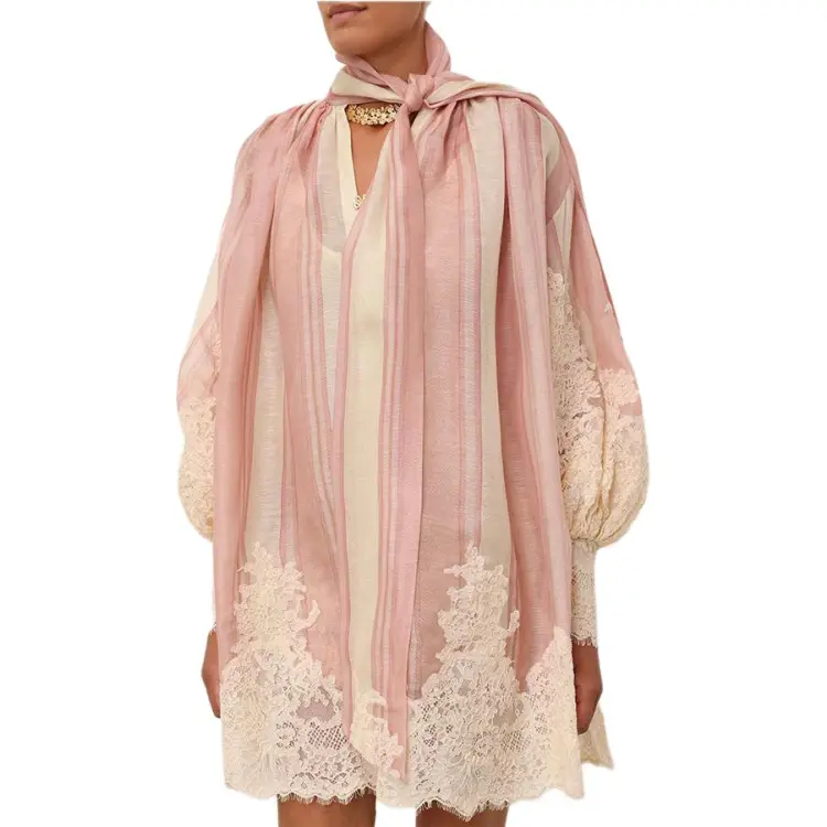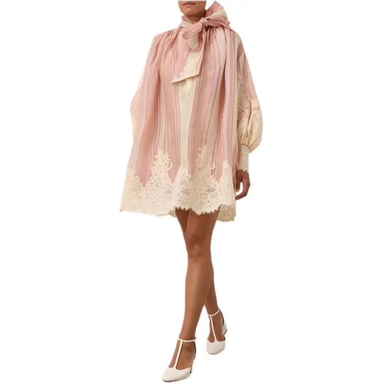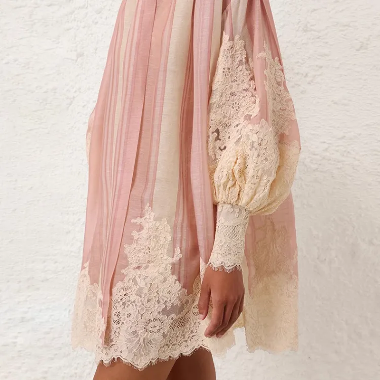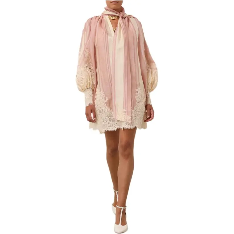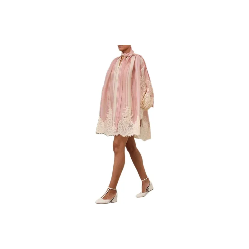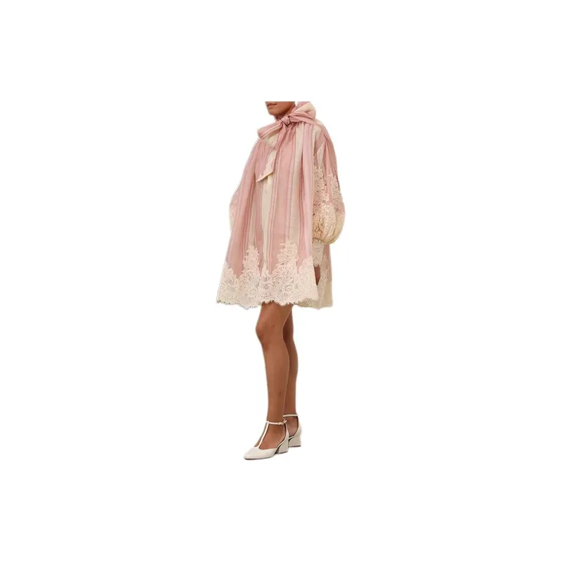 Zimmermann SS24 Длинное платье с длинными рукавами женское розовое