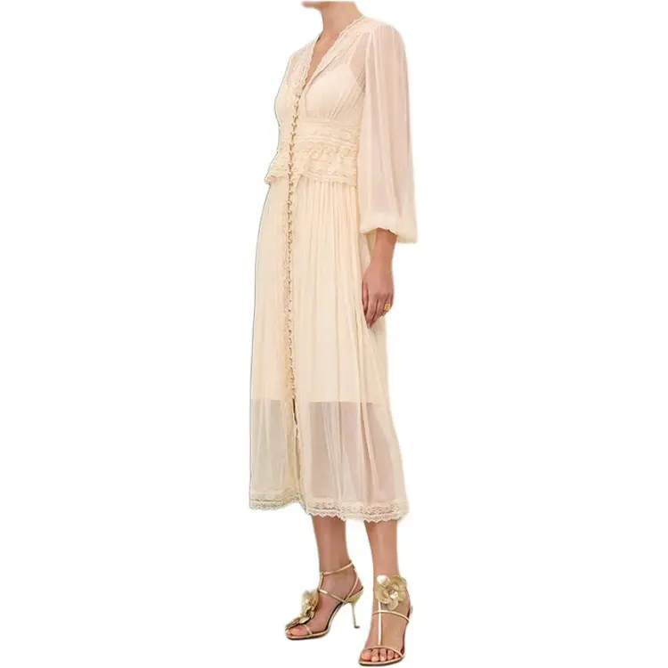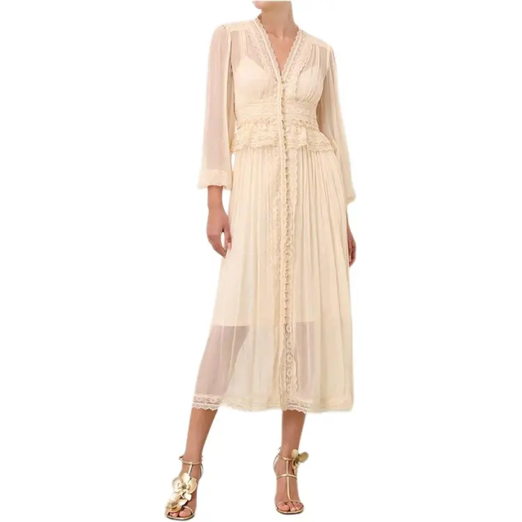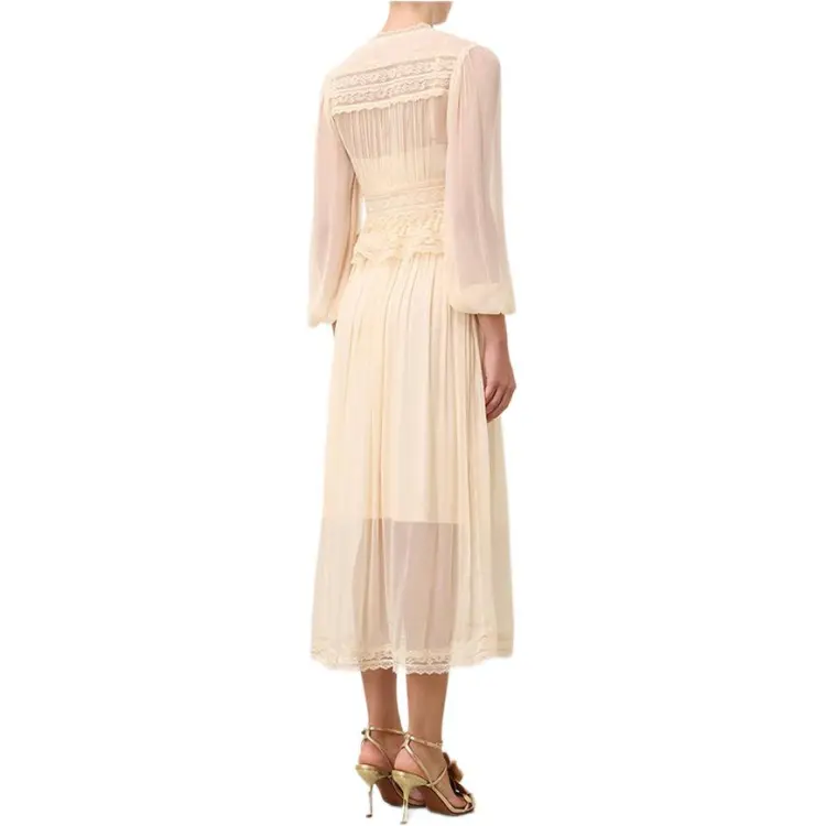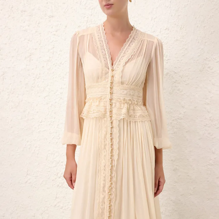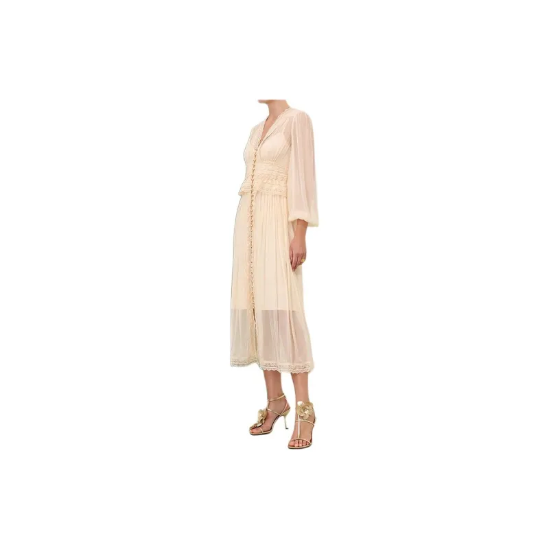 Zimmermann SS24 Длинное платье с длинными рукавами женское бежевый