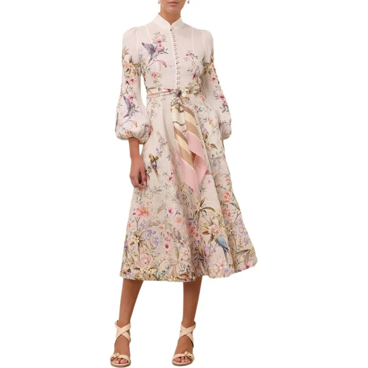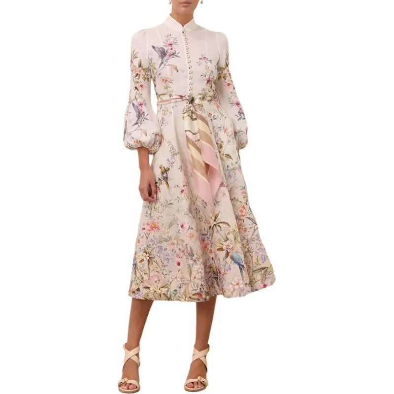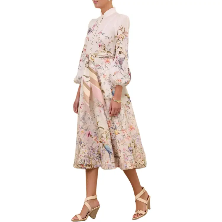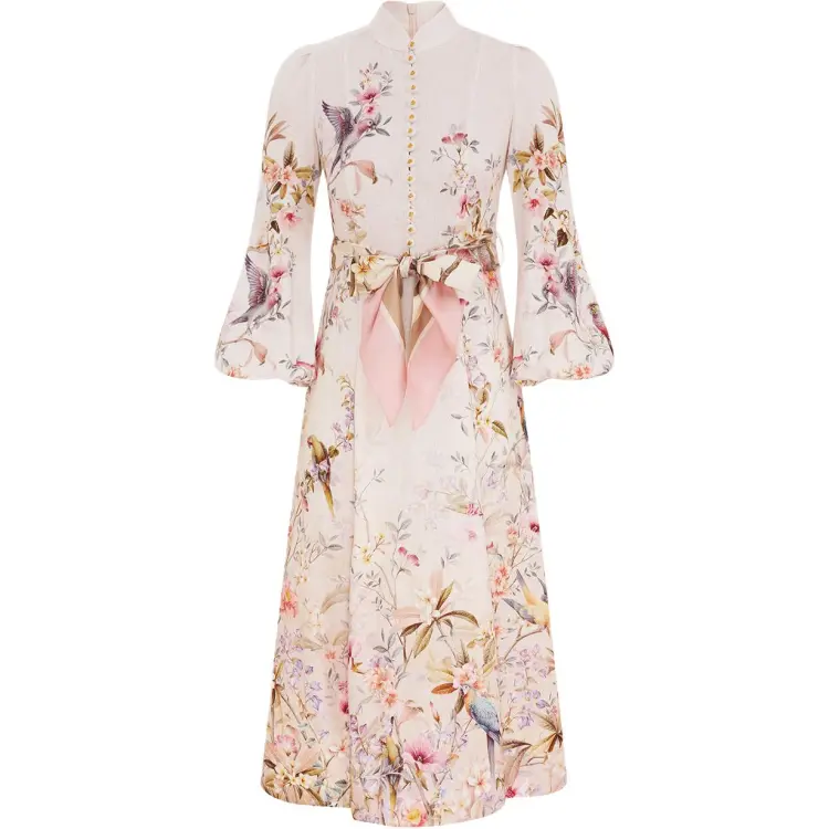 Zimmermann SS26 Длинное платье с длинными рукавами женское