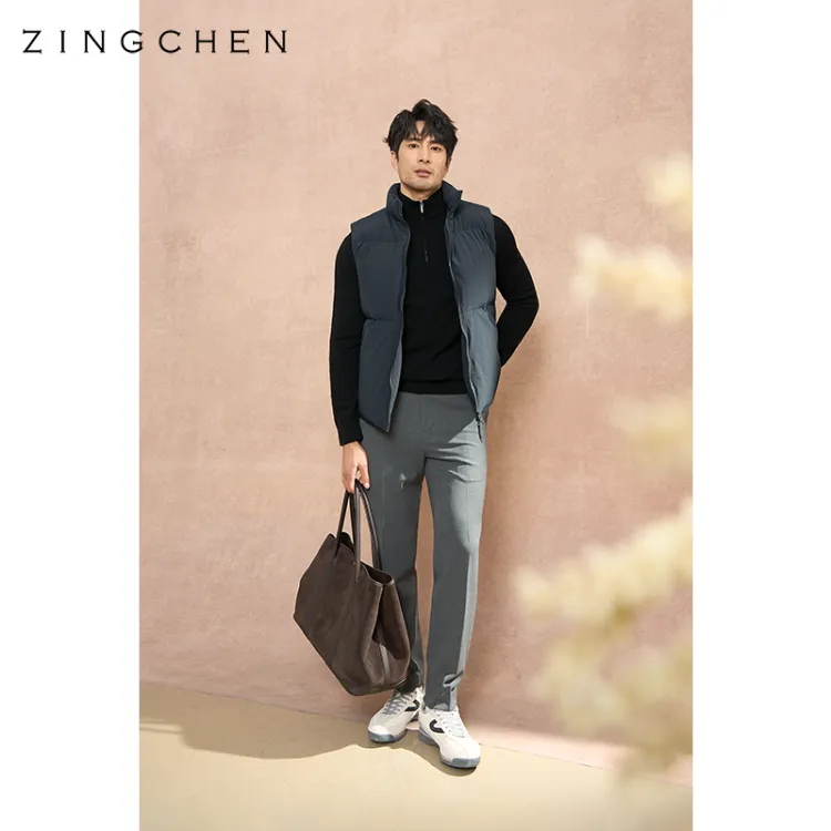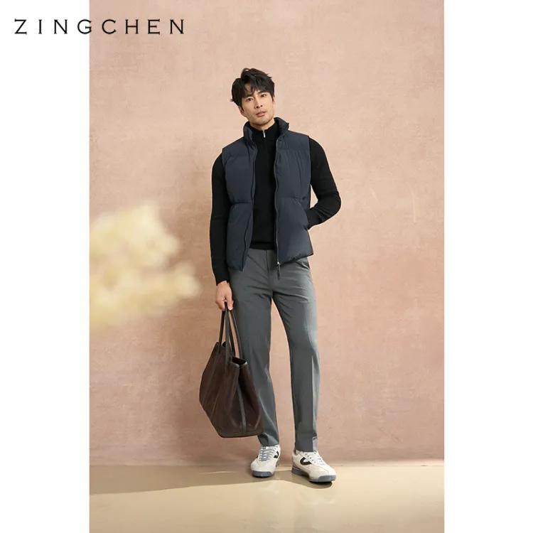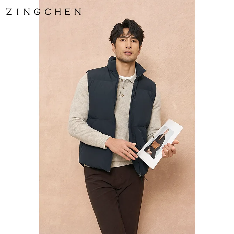 ZINGCHEN Темно-синий синий мужской пуховый жилет