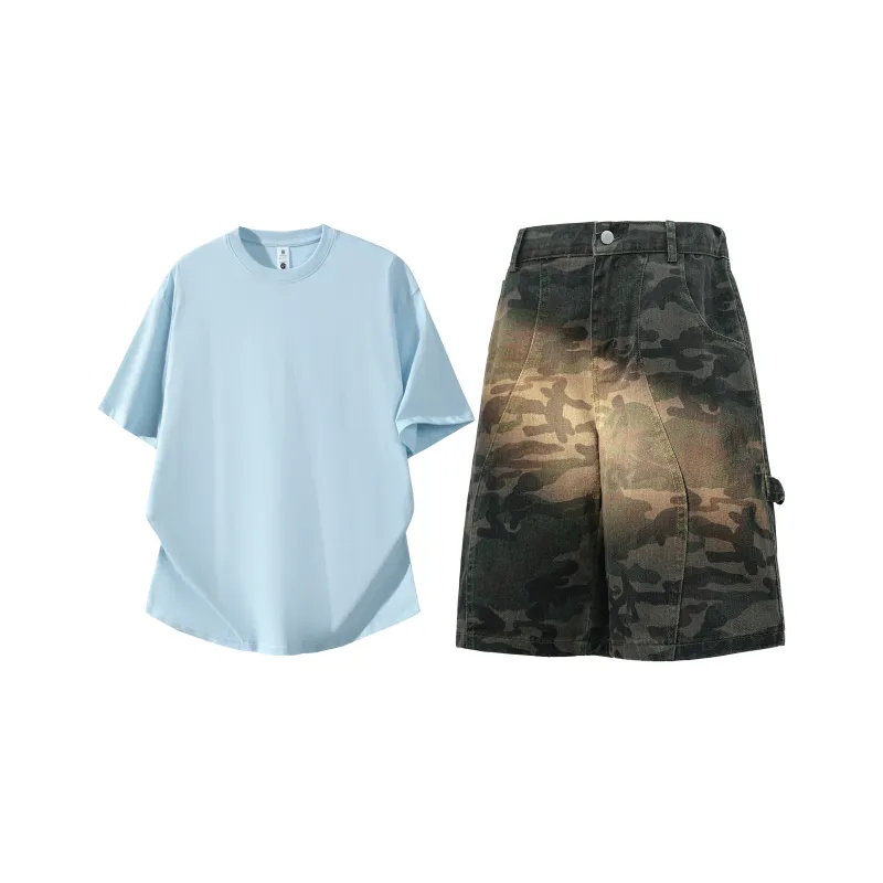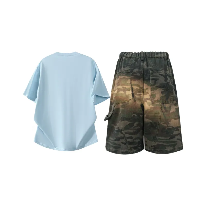 Комплект:Синяя футболка + камуфляжные штаны