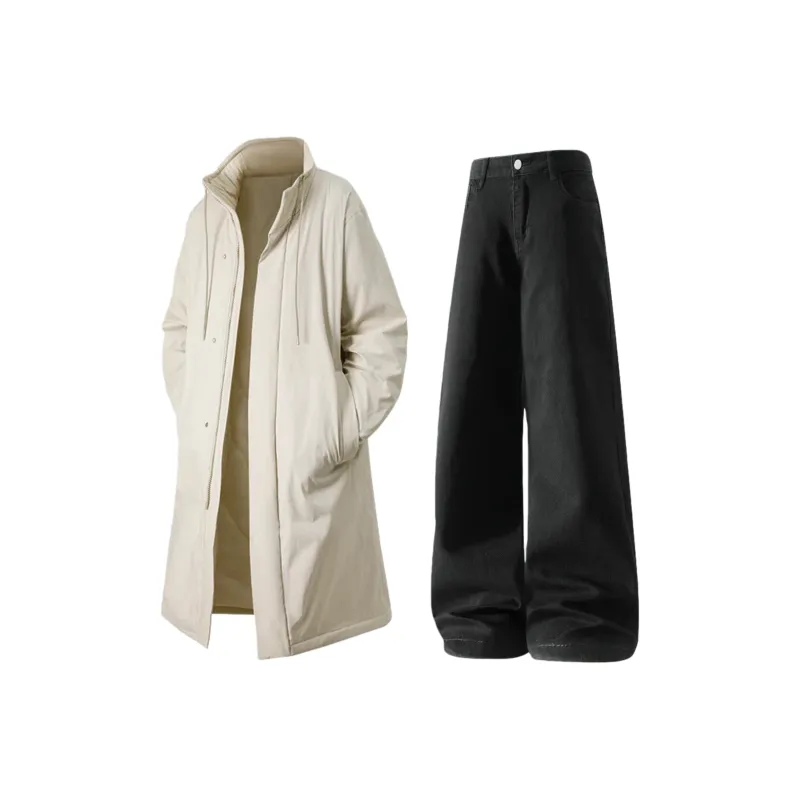 Комплект:Хаки хлопковый пуховик + черные джинсы