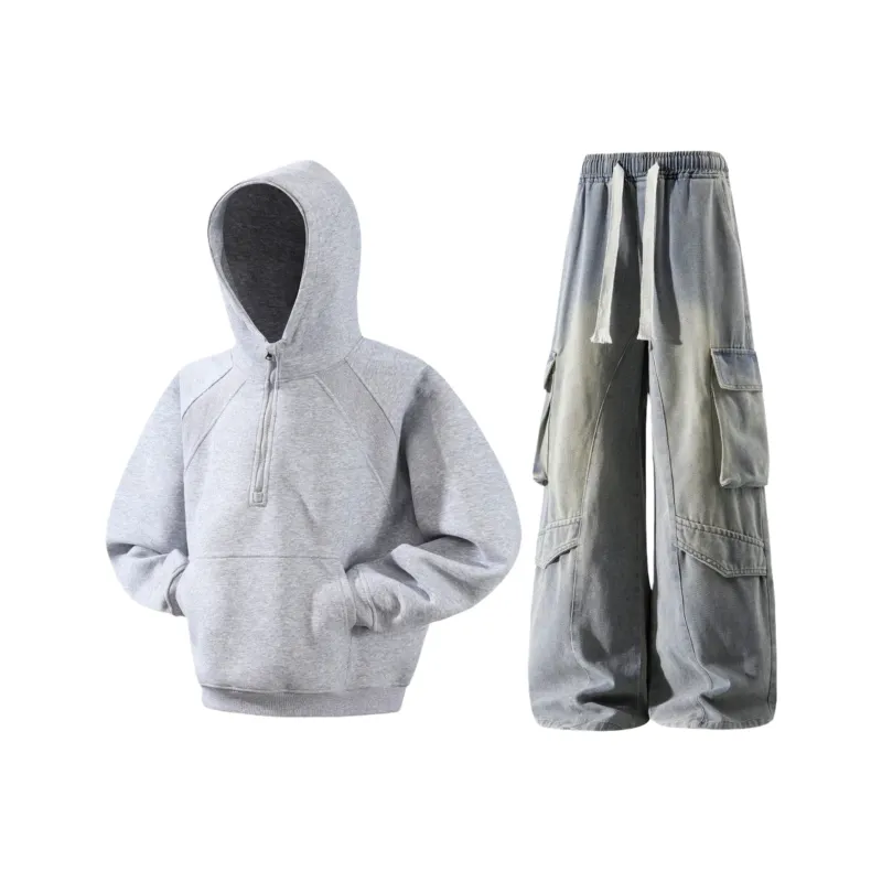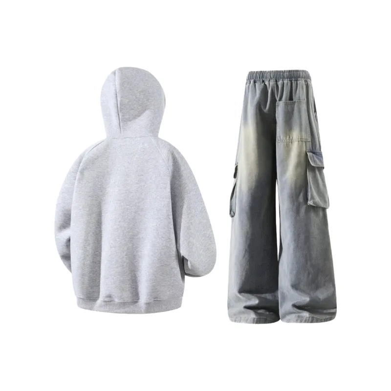 Комплект:Серый свитшот + желтые грязные штаны