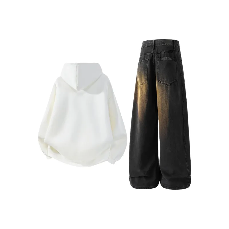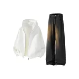 Комплект:Белое пальто + черные джинсы