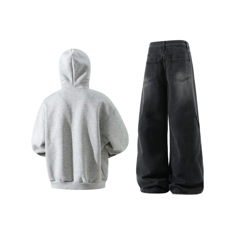 Темно-серый свитшот + винтажные синие джинсы