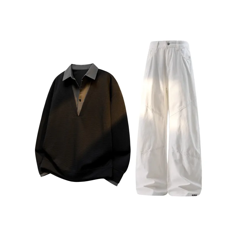 Комплект:Чёрный свитшот + белые штаны