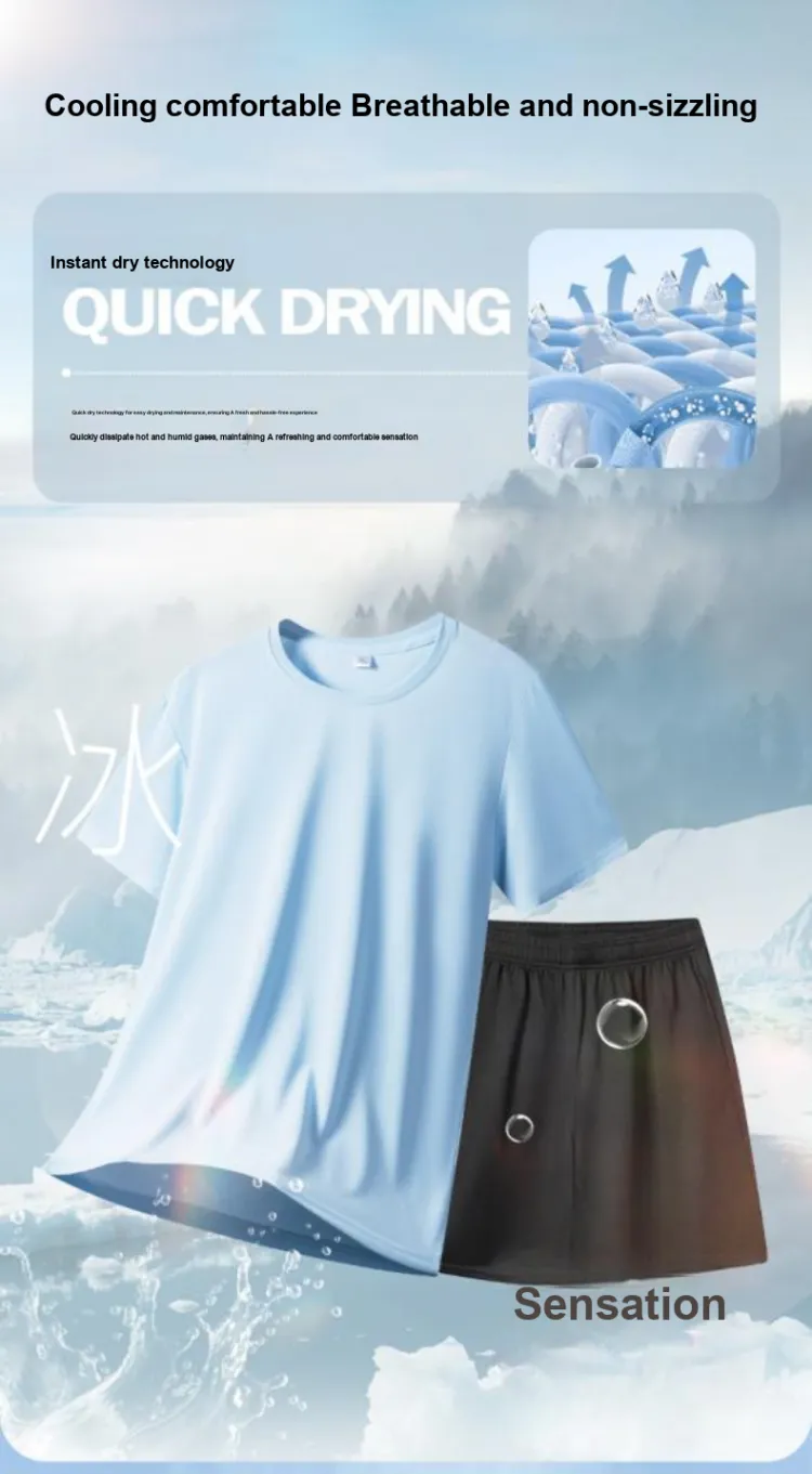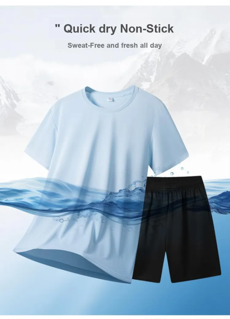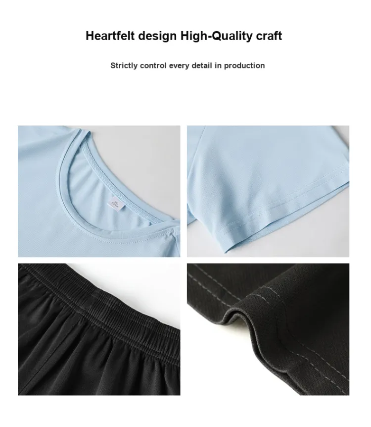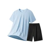 Комплект:Комплект одежды (Пыльно-синяя футболка + черные шорты)