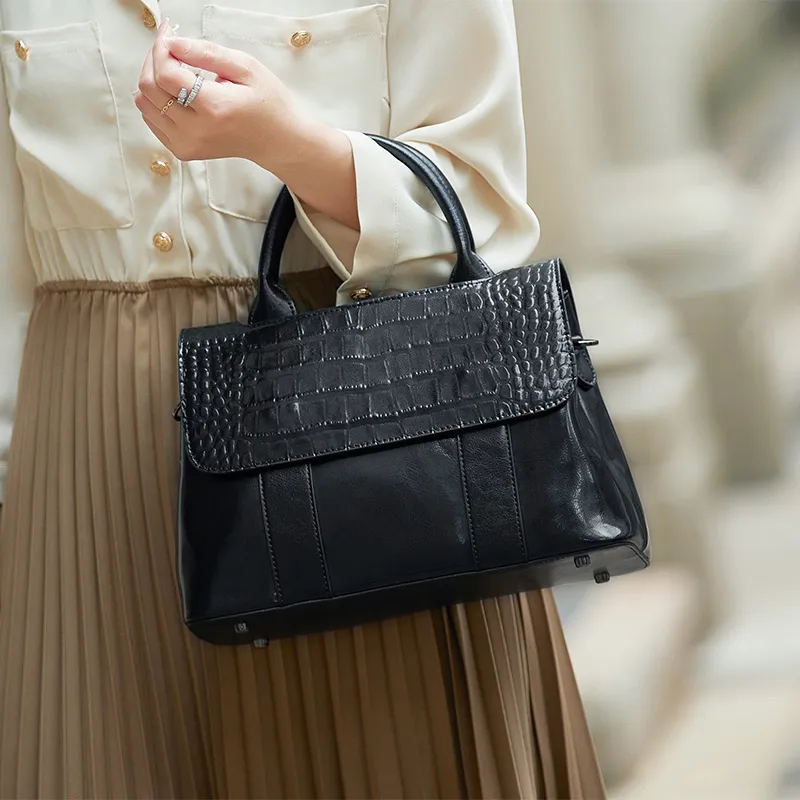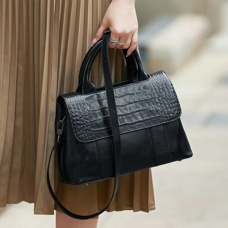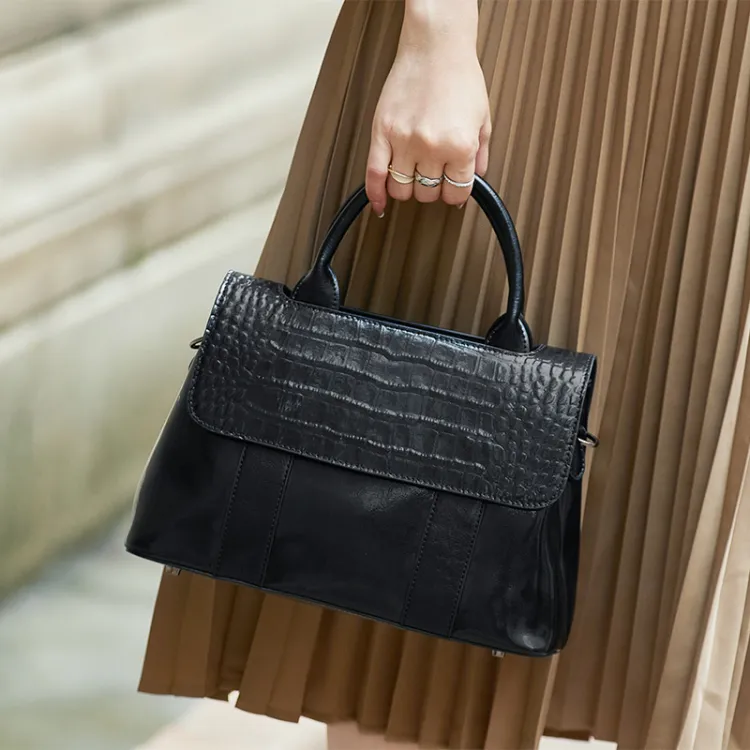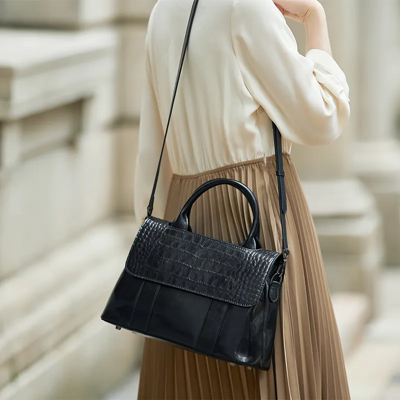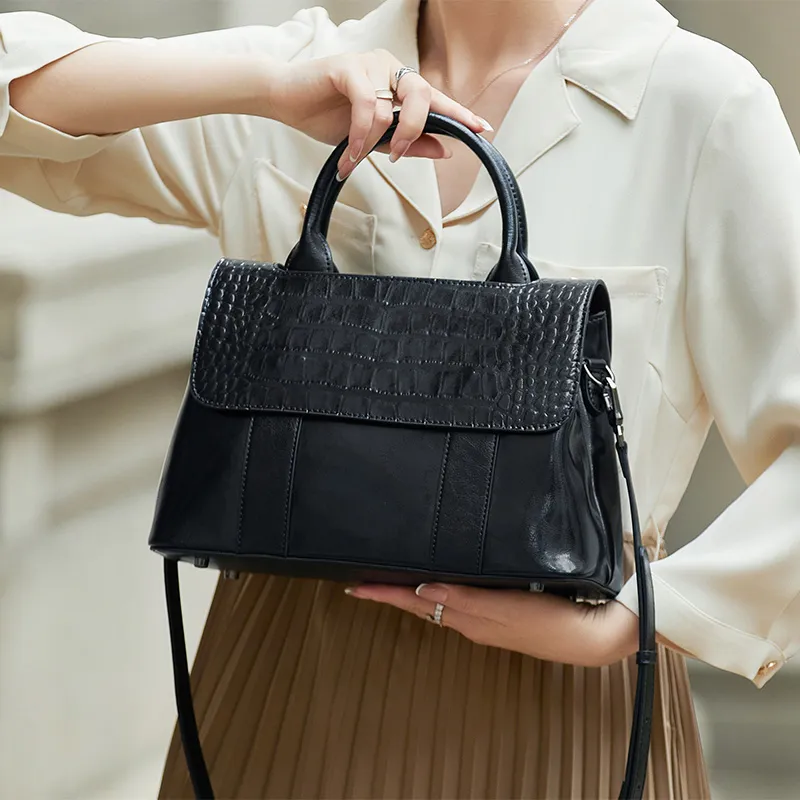 ZOOLER Сумка из крупнозернистой текстуры коровьей кожи элегантная через плечо среднего размера женская черная