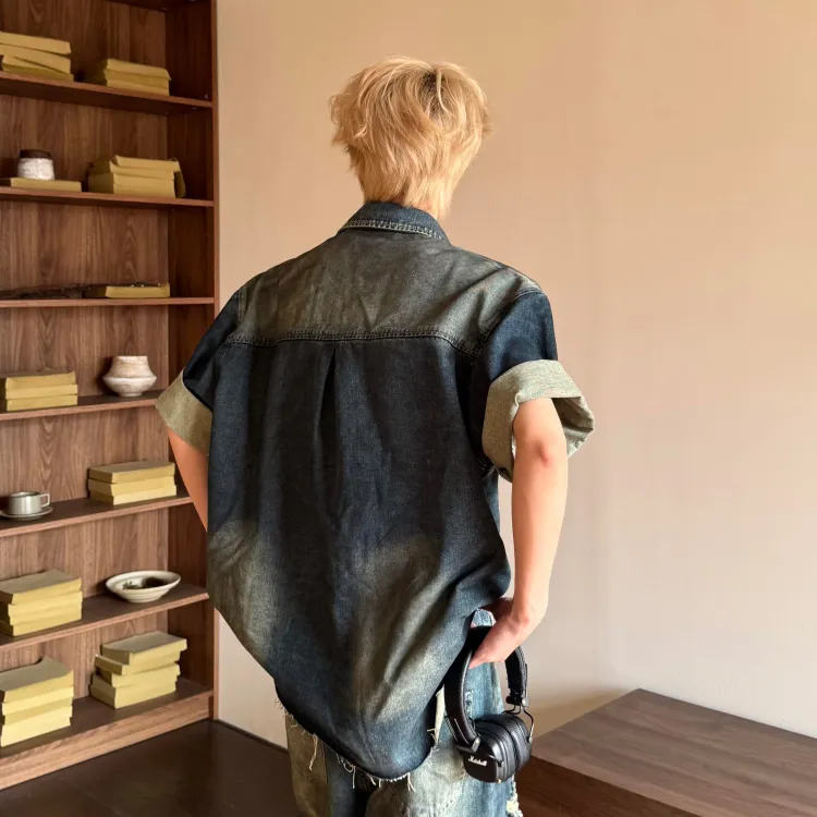 ZOTRANS Винтажная синяя унисекс рубашка