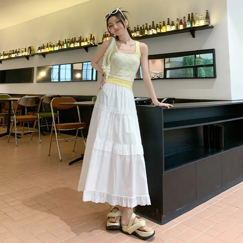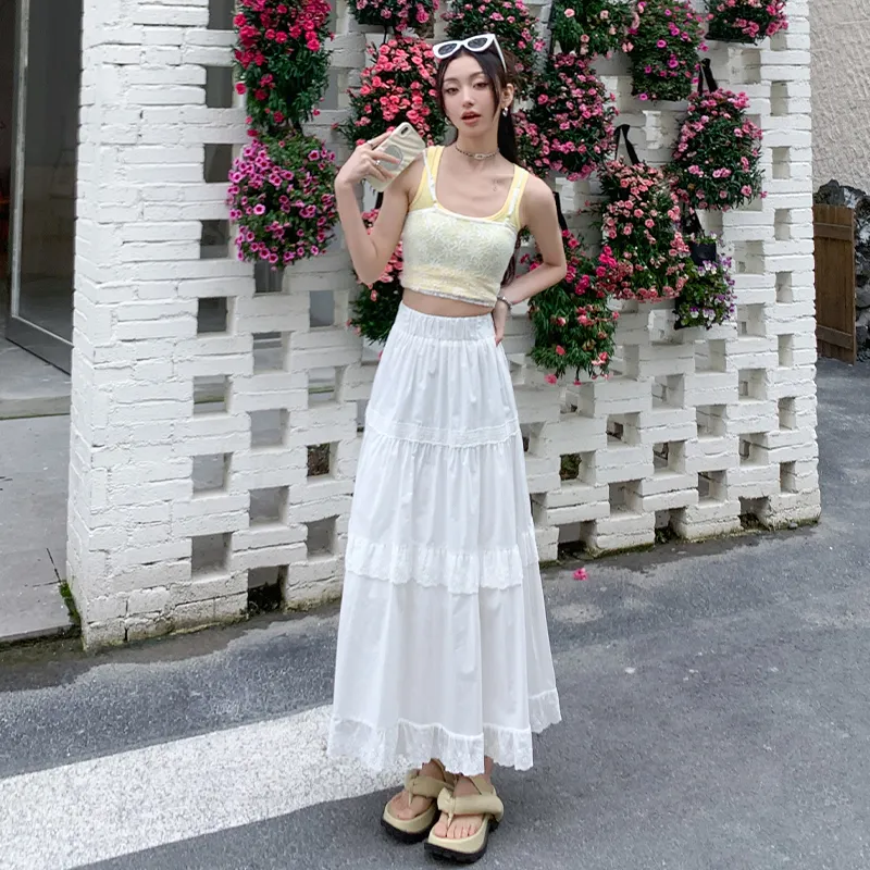 ZSFA Повседневный Длинный Юбка Женская Белая
