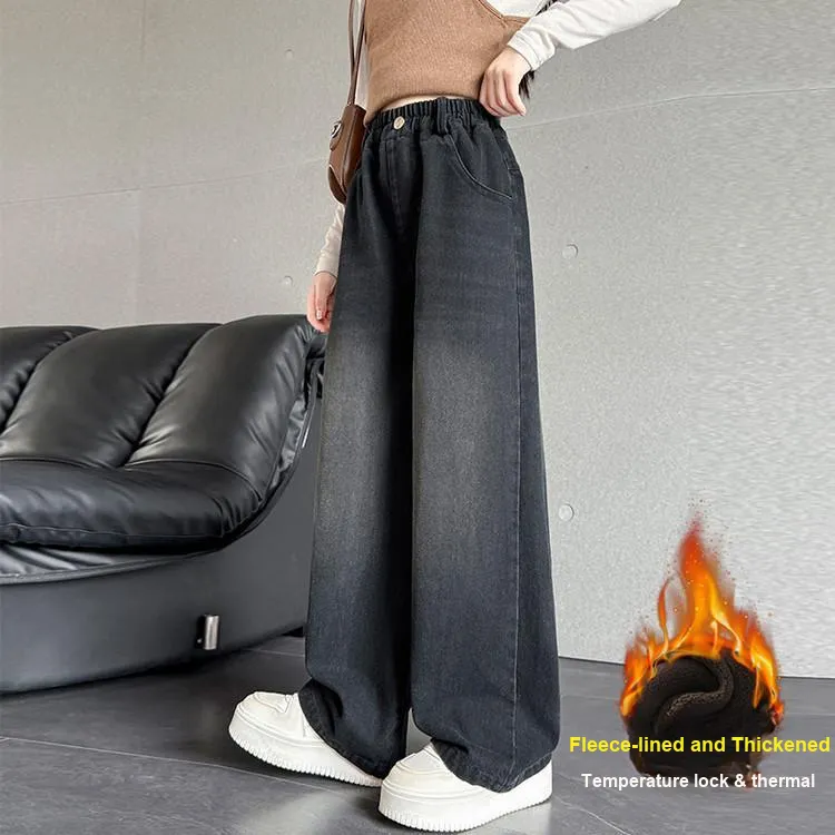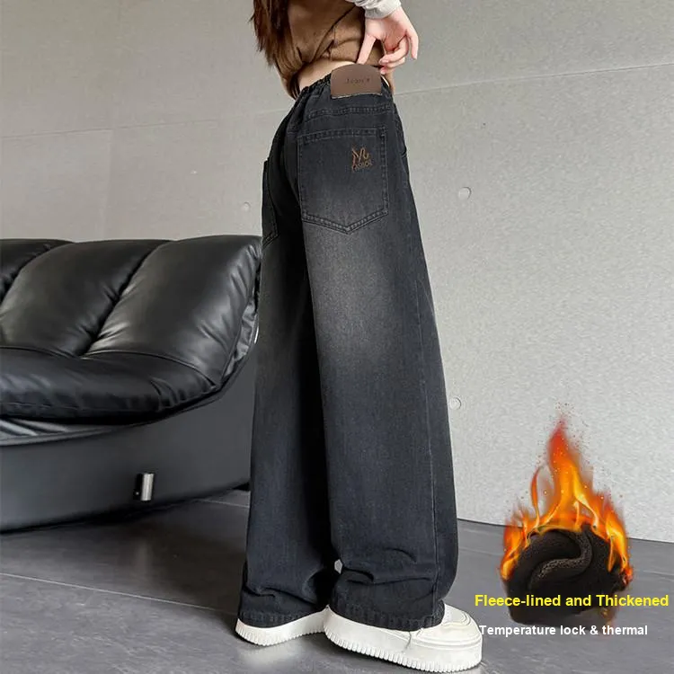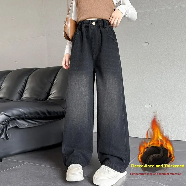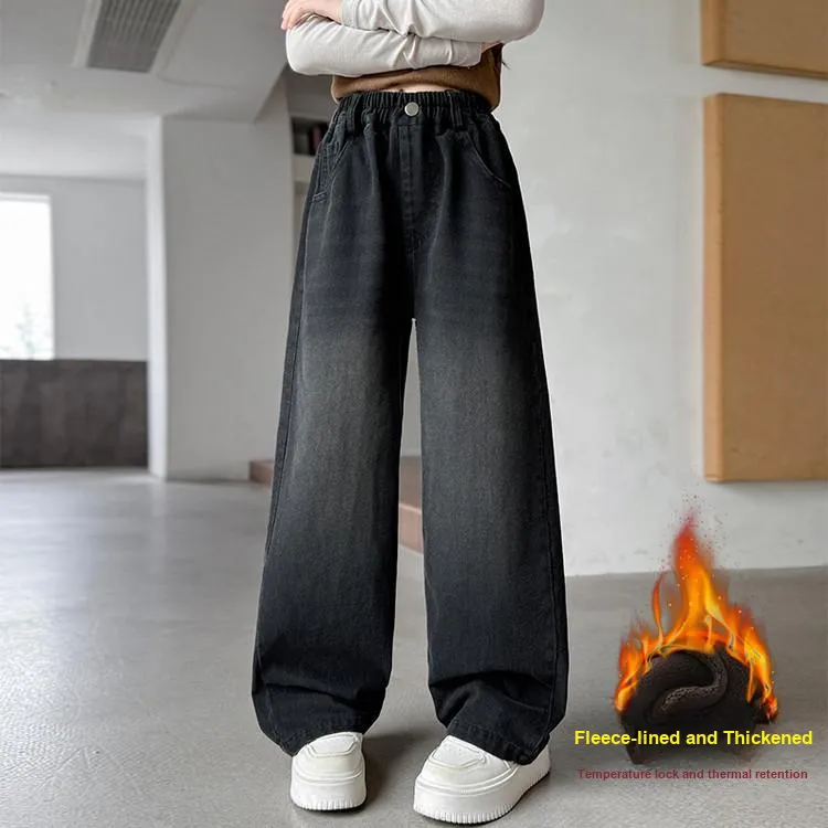 ZUANHOU Черные джинсы для детей с флисовой подкладкой