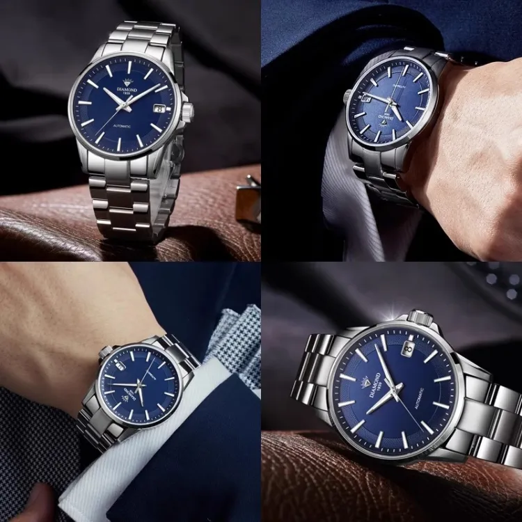 Diamond Автоматический Ручной Механический Механизм Мужские Часы 41 мм Синий