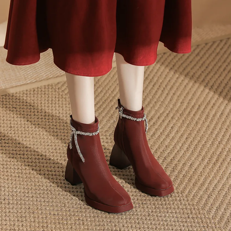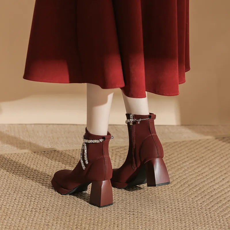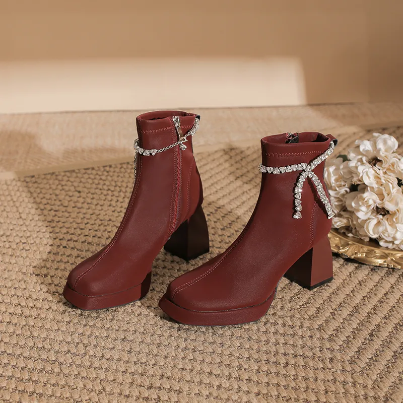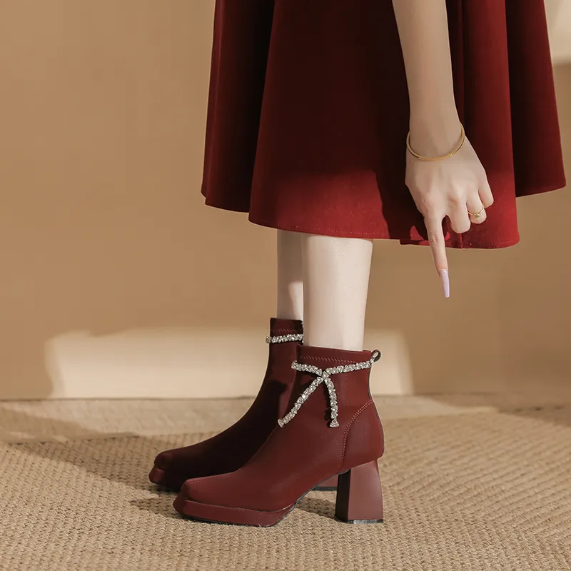 Zubumei Ботильоны 7CM Женские Бордовый