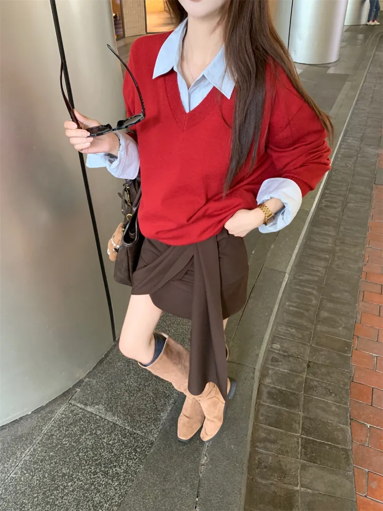 Свитер, рубашка, юбка