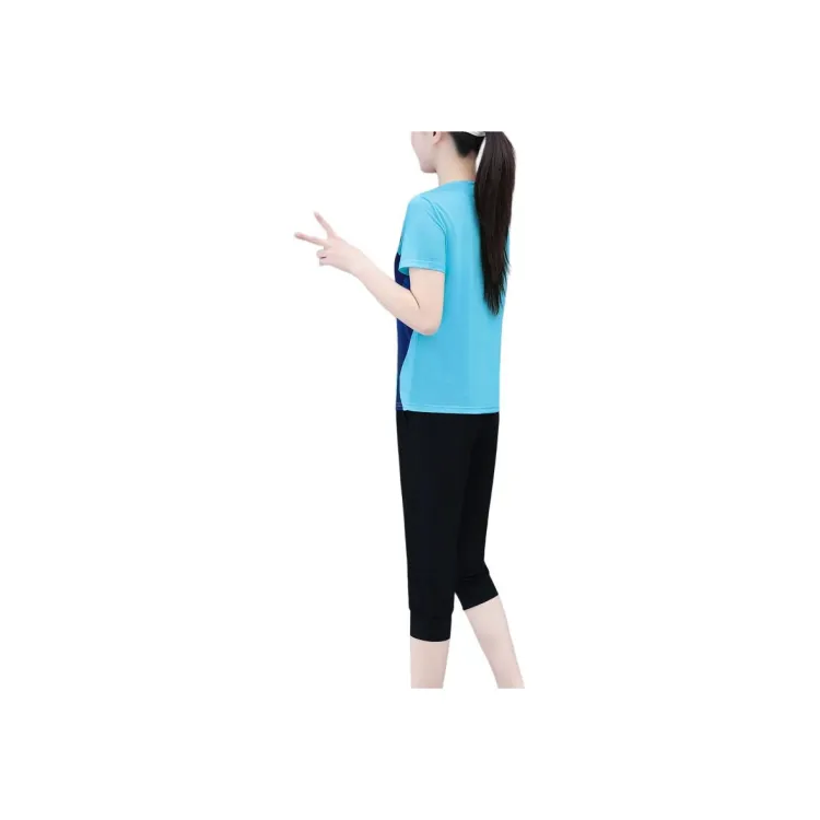 Комплект:Комплект одежды (Светло-синий топ + Черные капри штаны)
